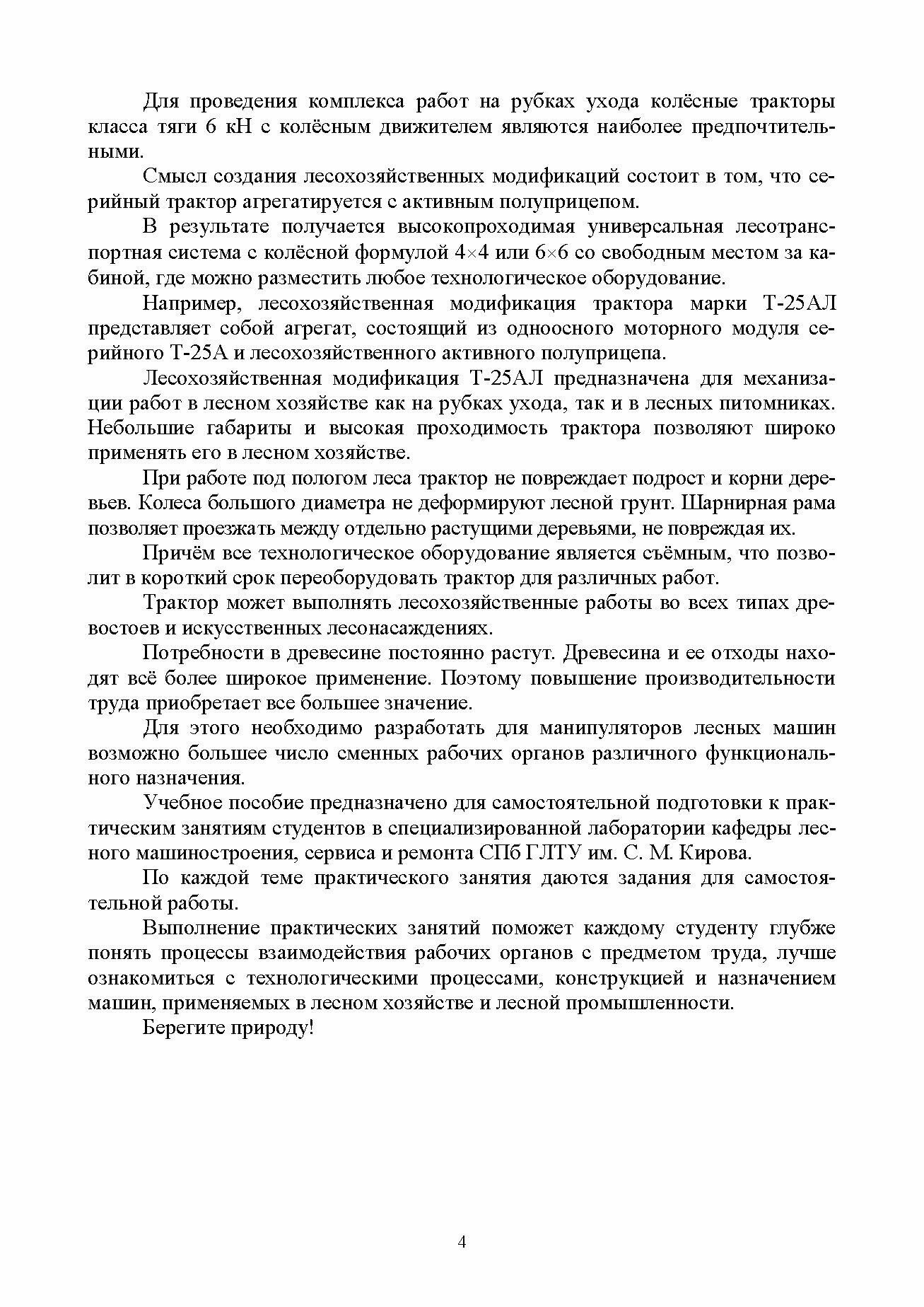 Пособие предназначено для самостоятельной работы студентов при подготовке к выполнению практических занятий по дисциплине «Машины и оборудование лесного хозяйства» направления подготовки «Технология лесозаготовительных и деревоперерабатывающих производств».