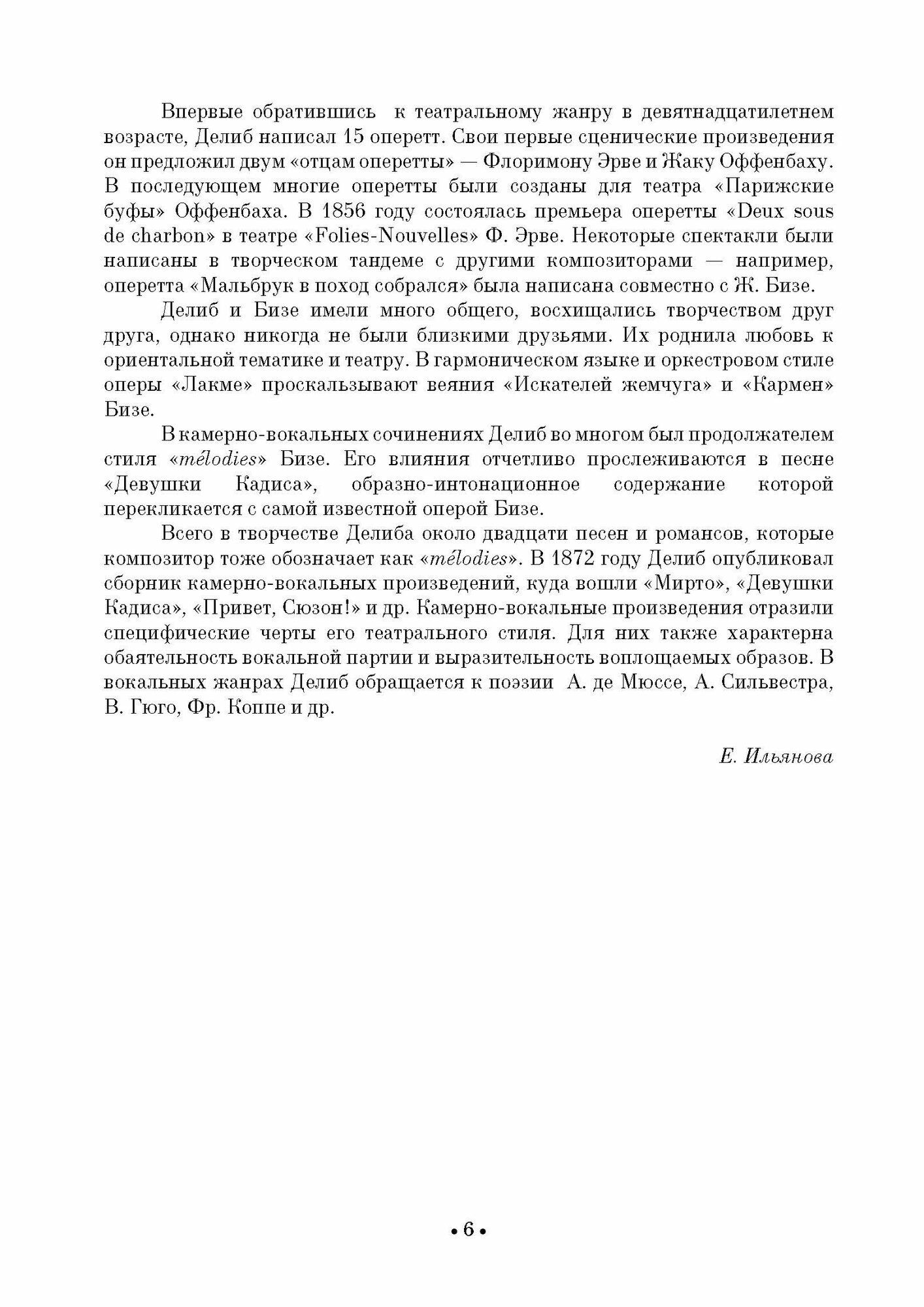 Лео Делиб (1836—1891) в первую очередь известен как автор балетов, опер, оперетт. Камерно-вокальные произведения (20) с жанровым подзаголовком «melodies» отразили специфические черты его театрального стиля. Для них также характерны обаятельность вокальной партии и выразительность воплощаемых образов. В издание вошли опусы на слова А. де Мюссе, А. Сильвестра, В. Гюго и др.