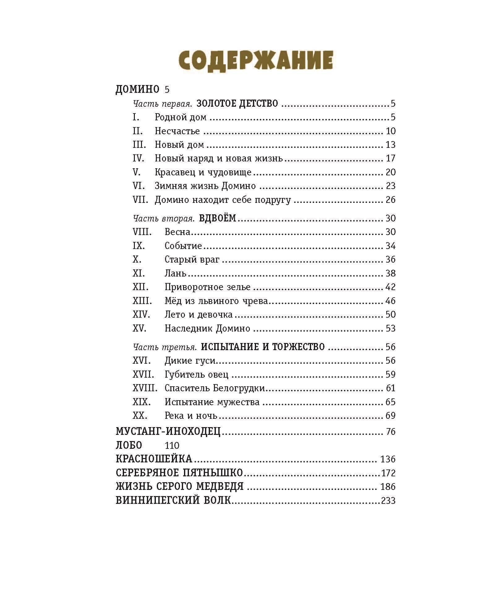 В книгу вошли наиболее известные рассказы знаменитого канадского естествоиспытателя, писателя и художника Эрнеста Сетон-Томпсона: "Мустанг-иноходец", "Лобо", "Красношейка", "Виннипегский волк", "Серебряное пятнышко", "Жизнь серого медведя", а также повесть "Домино". Классический перевод Николая Чуковского. Особую выразительность книге придают великолепные иллюстрации Владимира Канивца. Читатели ценят их за точность деталей и выразительность образов.