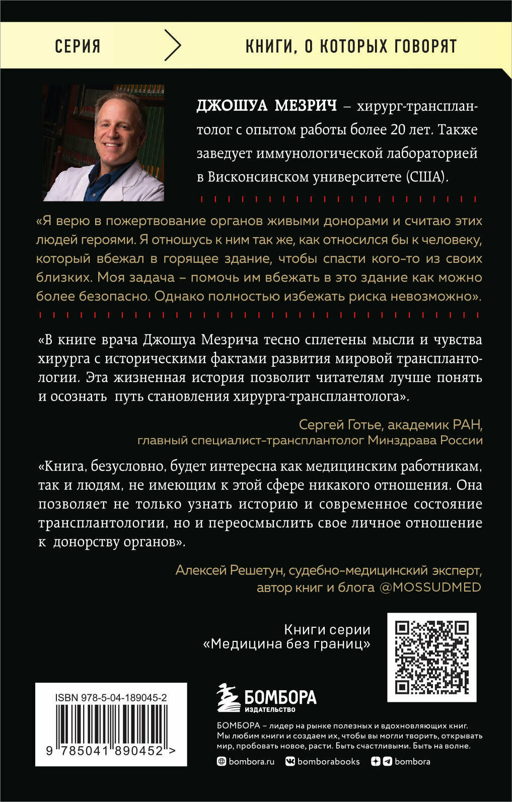 Когда смерть становится жизнью. Будни врача-трансплантолога (Джошуа Мезрич); Эксмо, БОМБОРА, 2023