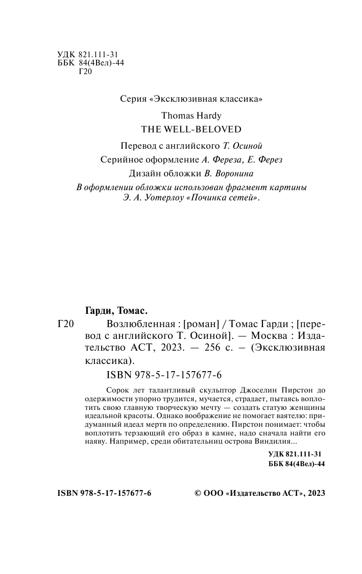 Сервис сравнения цен СкидкаГИД предлагает сравнить цены на товар «Книга: Возлюбленная (Томас Харди (Гарди)); Издательство АСТ, 1892»