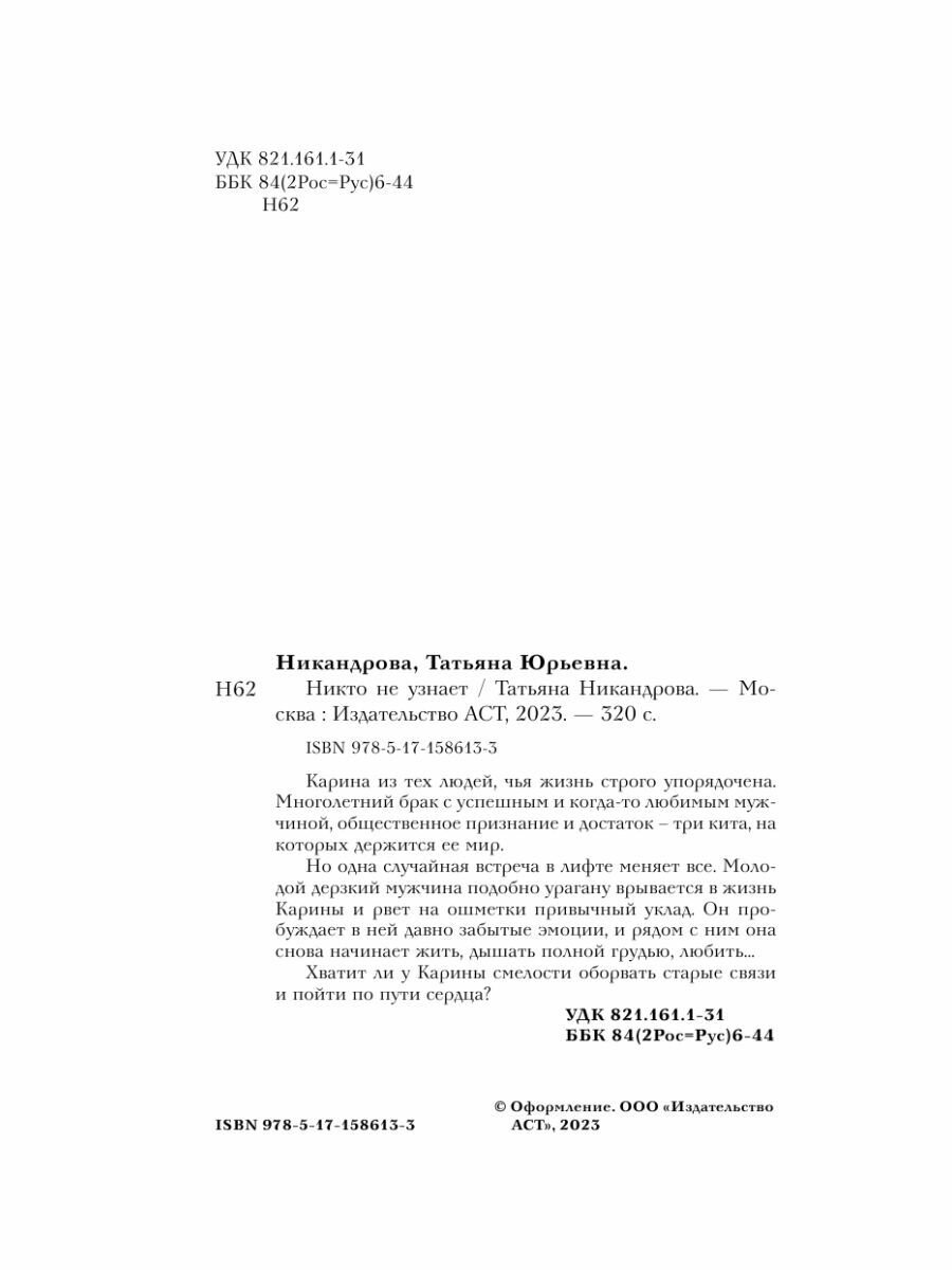 Книга: Никто не узнает (Никандрова Татьяна Юрьевна); ИЗДАТЕЛЬСТВО "АСТ", 2023