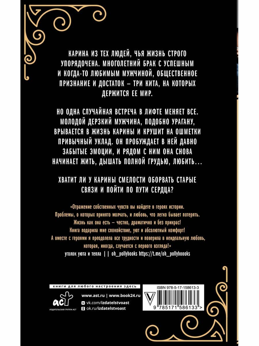 Но одна случайная встреча в лифте меняет все. Молодой дерзкий мужчина, подобно урагану, врывается в жизнь Карины и рвет на ошметки привычный уклад. Он пробуждает в ней давно забытые эмоции, и рядом с ним она снова начинает жить, дышать полной грудью, любить…