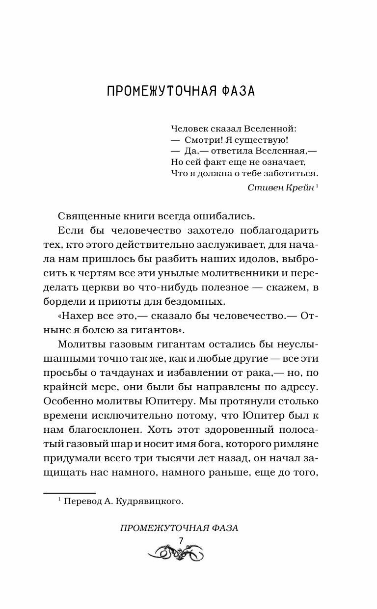"Непорочная пустота": Когда Дафне было шесть лет, на нее напал маньяк. Девочка выжила, но психологически так до конца и не оправилась. Уже взрослая, она в очередной раз исчезает, в этом нет ничего нового, но ее брат Таннер отправляется на поиски сестры и вскоре сталкивается с подлинным ужасом. Ни Таннер, ни Дафна не подозревают, что им придется иметь дело с убийцами, которые действуют, подчиняясь воле сущностей, что живут за гранью времен. Ведь в этом мире все взаимосвязано, например, пропажи людей и странная судьба, постигшая один из спутников Юпитера. И теперь знаки, что преодолели световые годы, говорят о том, что в космосе существует нечто, чего боятся даже боги.