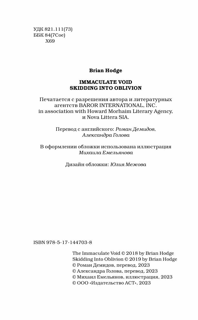 Непорочная пустота. Соскальзывая в небытие (Брайан Ходж); Издательство АСТ, 2018, 2019