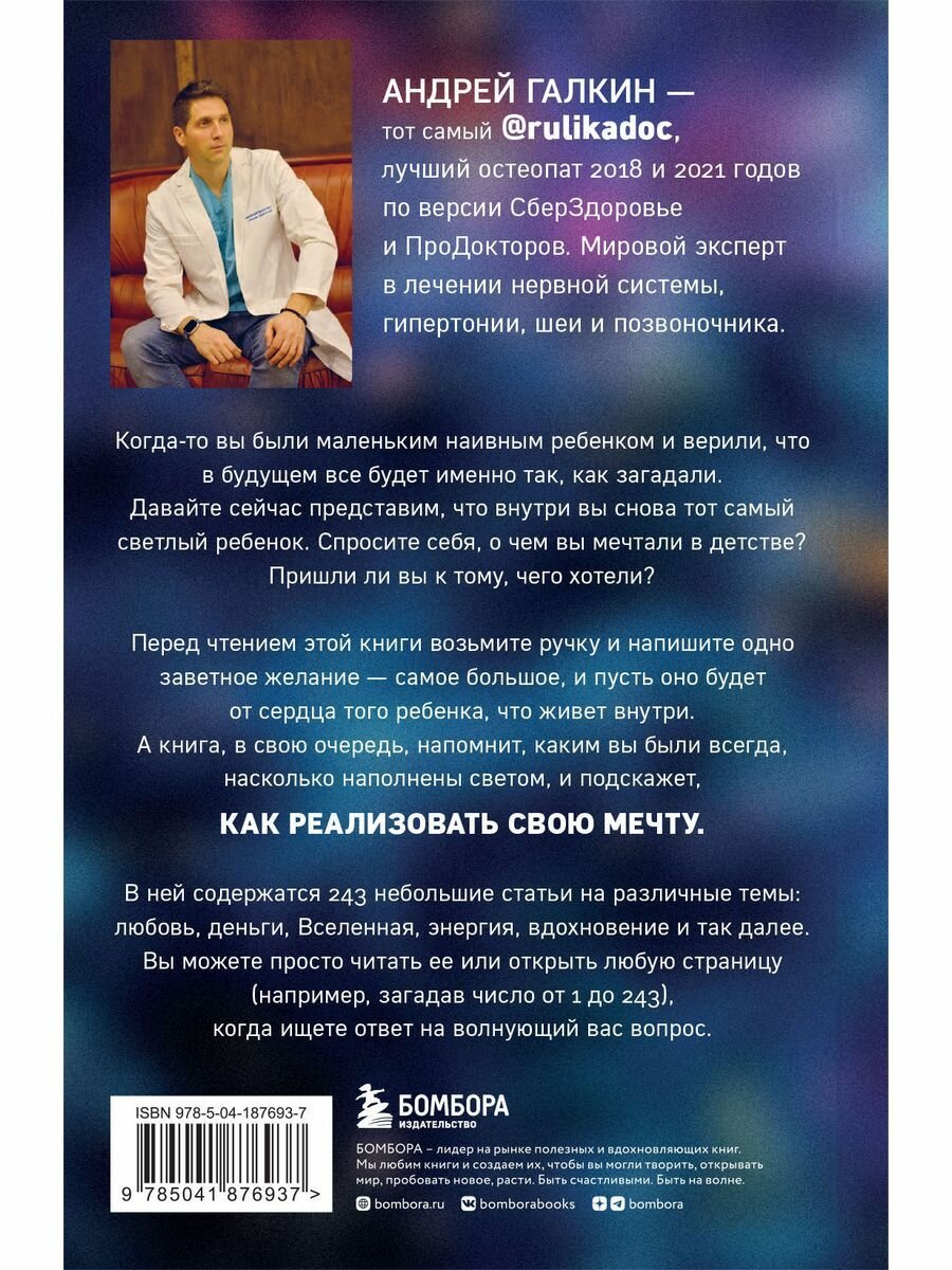 Перед чтением этой книги возьмите ручку и напишите одну главную мечту — самую большую, и пусть она будет от сердца того ребенка, что живет внутри. А книга, в свою очередь, поможет вспомнить, каким вы были всегда, насколько наполнены светом и, возможно, поможет понять, как реализовать свою мечту.