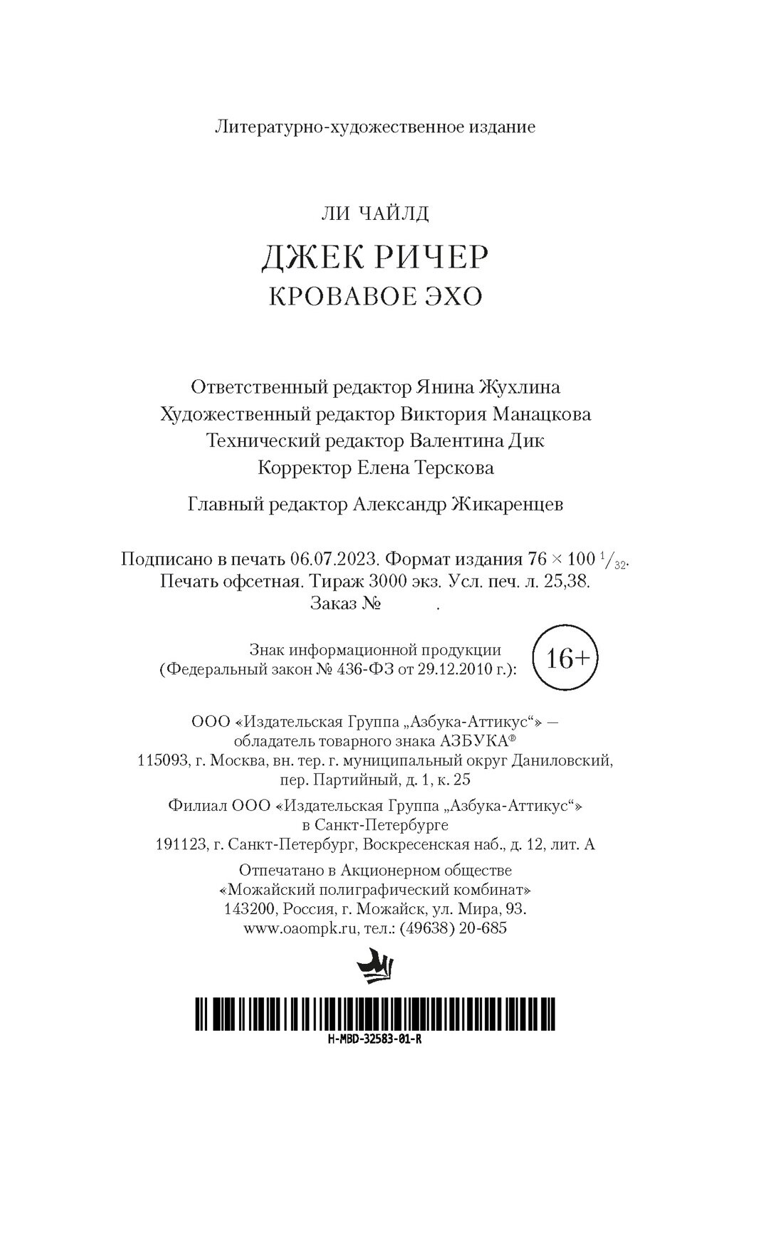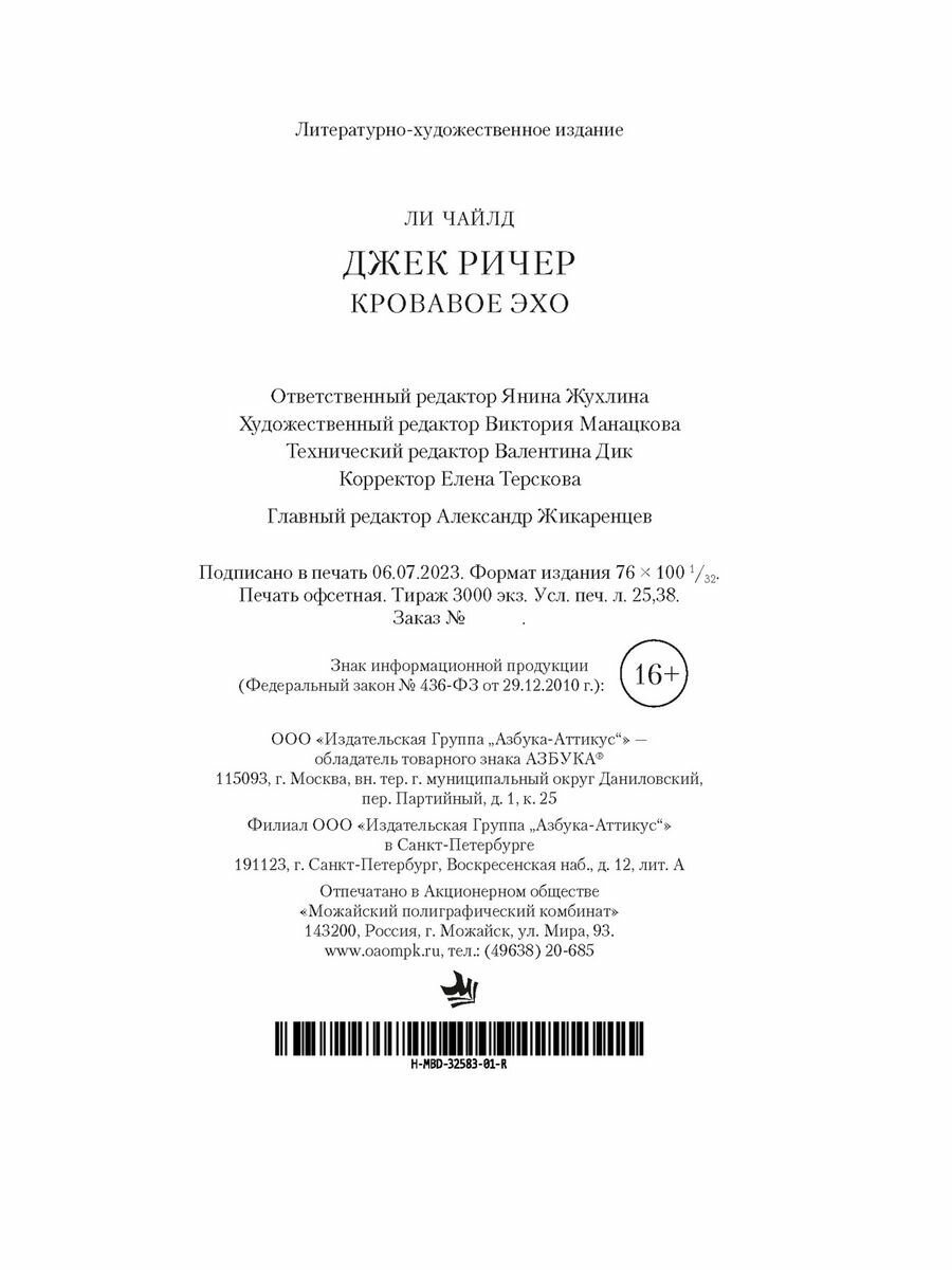 Книга: Джек Ричер: Кровавое Эхо (Ли Чайлд); Азбука, 2023