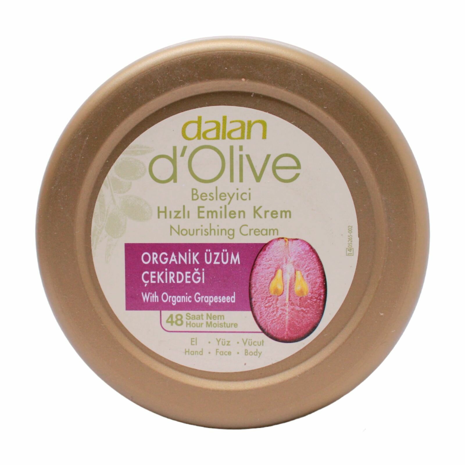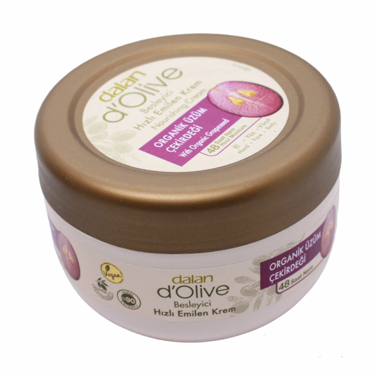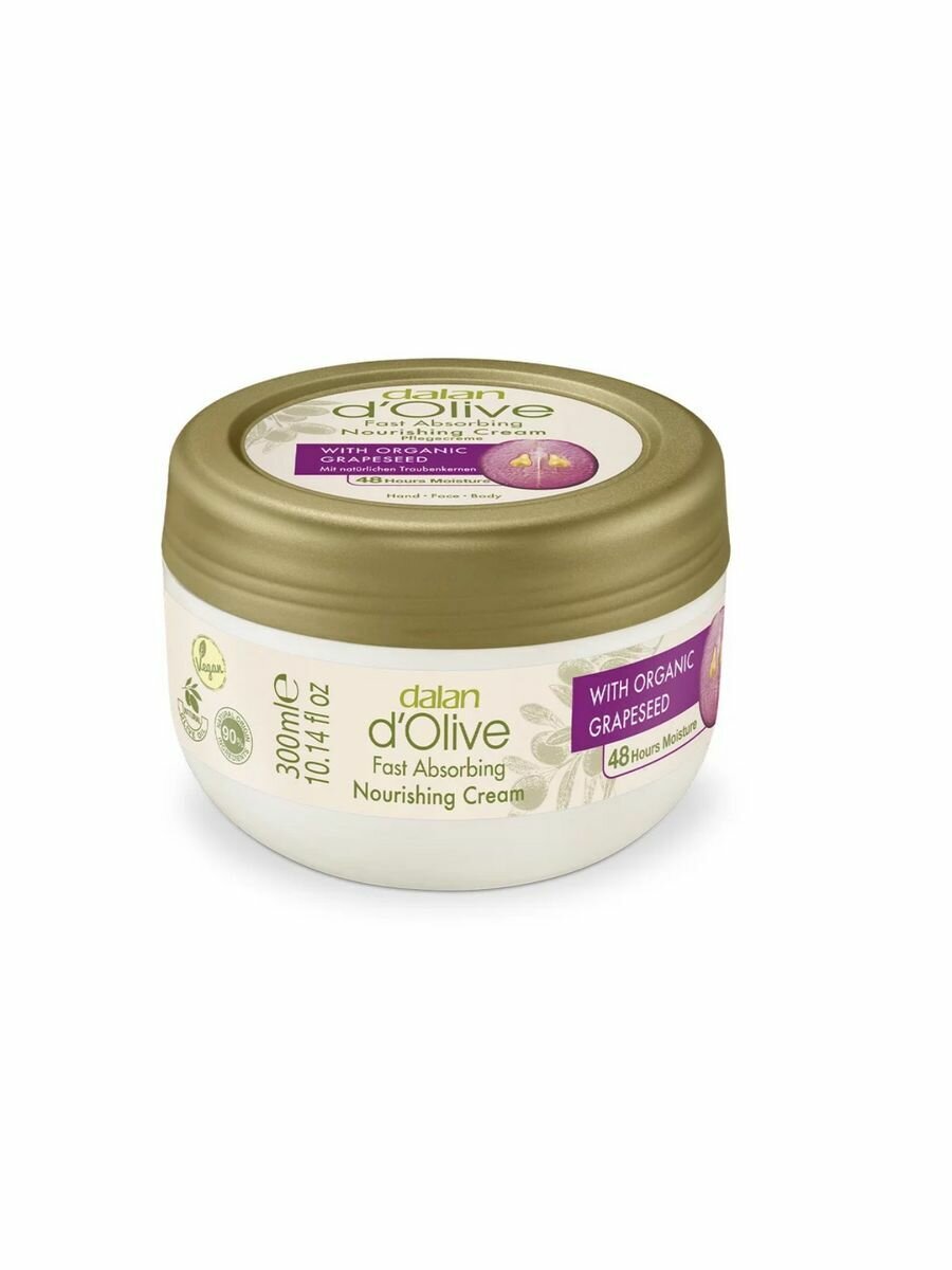 Основным преимуществом использования увлажняющего крема с маслом виноградной косточки является то, что оно насыщает кожу необходимыми жирами и питательными веществами, улучшает внешний вид кожи и делает ее более мягкой, гладкой и здоровой. Поскольку турецкий крем с косметическим маслом из виноградных косточек содержит витамины А и С , оно полезно для здоровья и для внешнего вида кожи. Ежедневное применение питательного крема стимулирует выработку коллагена и эластина , придавая коже упругость и эластичность. Кроме того, крем для ухода за кожей оказывает благотворное влияние на восстановление и поддержание, помогает восстановить цвет, предотвращать преждевременное старение, улучшать текстуру кожи и защищает ее от вредного воздействия окружающей среды. Крем для рук помогает уменьшить морщинки, борется с пигментацией. Также оно способствует укреплению ногтей и отшелушиванию ороговевших клеток кутикулы. Крем питательный содержит натуральные ингредиенты, которые быстро впитываются в кожу, обеспечивая глубокое увлажнение. Крем для чувствительной сухой кожи восстановит естественную влажность и придаст коже бархатистость и мягкость. Крем для тела имеет нежирную текстуру, которая не оставляет на коже липкой пленки. Нанести средство на кожу несложно, а приятный аромат поможет почувствовать релаксацию и успокоение. Крем с маслом виноградных косточек из Турции от популярного бренда Dalan – прекрасный и полезный способ ухода за кожей рук и тела. Для достижения наилучших результатов мы рекомендуем попробовать другие продукты из ассортимента Dalan d'Olive, такие как гель для душа или парфюмированное мыло. С натуральной косметикой Dalan ваша кожа будет чувствовать себя моложе.
