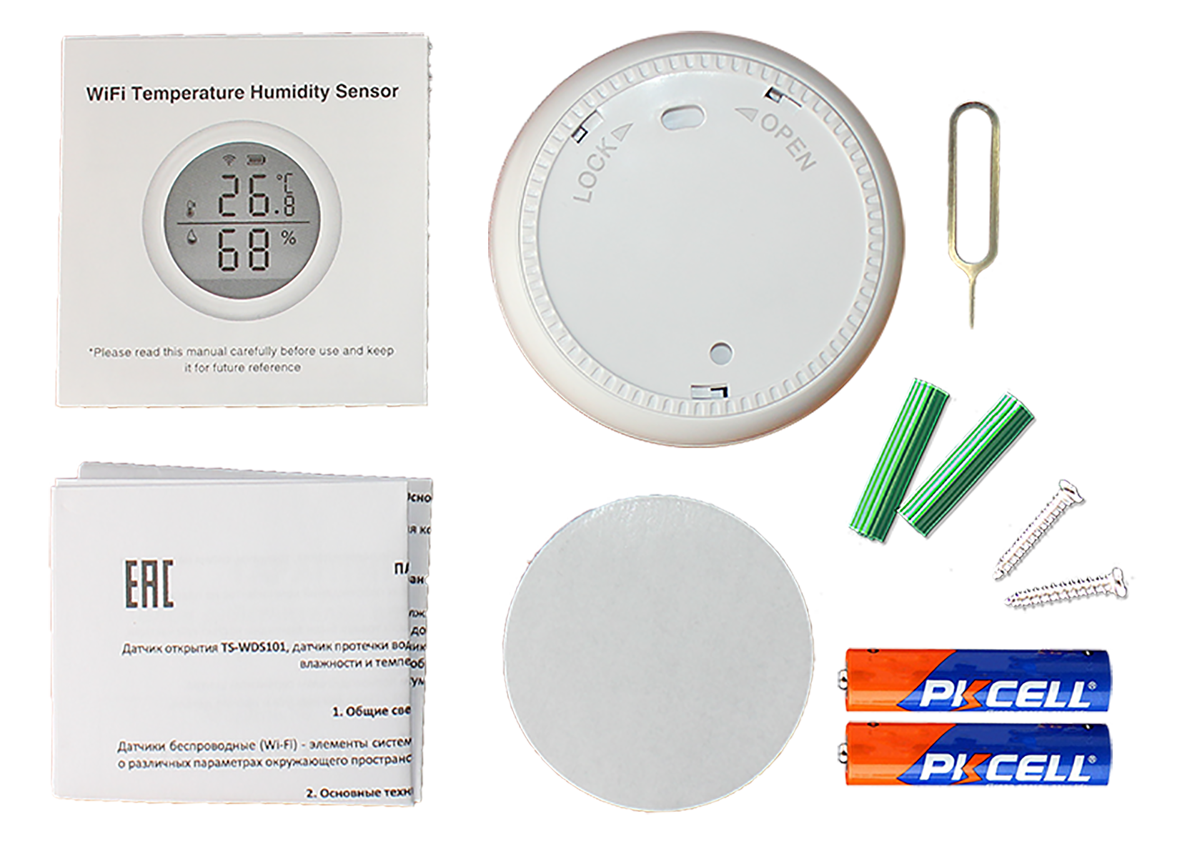 | Комплект поставки | Датчик температуры и влажности -1 шт. Cкотч - 1 шт. Батареи AAA - 2 шт. Монтажный комплект - 1 шт. |