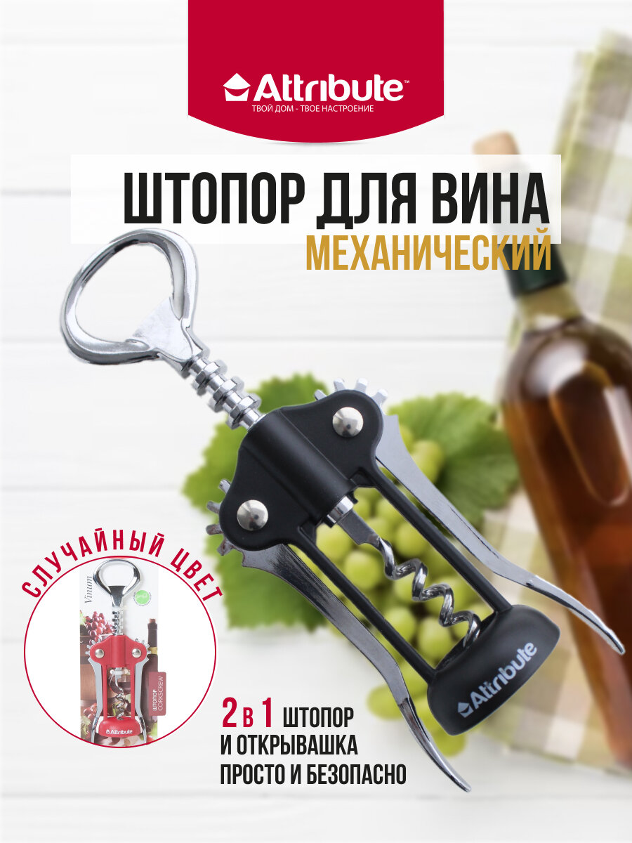 Штопор AGV215 Attribute VINUM незаменимый прибор в любом доме. Он очень прост в использовании: благодаря рычагам, не нужно прикладывать много усилий, чтобы вытащить пробку. Достаточно в крутить винт, при этом рычаги сами поднимутся вверх, а затем просто опустить их вниз, и пробка выйдет сама. Внимание! Товар представлен в нескольких видах, без возможности выбора. Цена указана за 1 шт.
