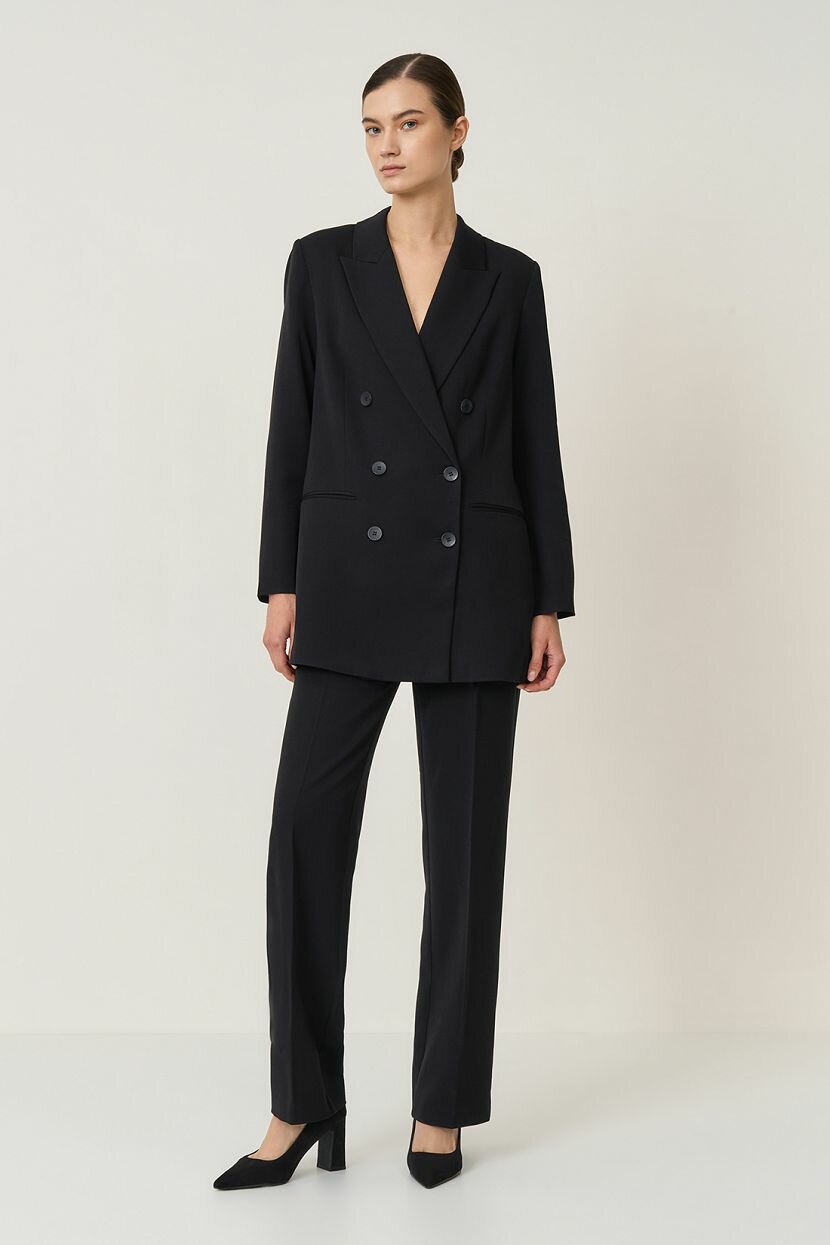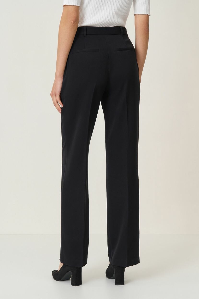 Элегантные брюки прямого кроя - мастхэв в гардеробе современной девушки. В тандеме с жакетом из аналогичного материала они составят стильный деловой костюм, но вы также сможете носить их вместе с рубашками, джемперами и кардиганами. Классическая посадка на талии с широким поясом и продуманной системой вытачек гарантирует комфорт ношения. Заутюженные стрелки визуально сделают ноги длиннее, а фигуру - стройнее. Брюки застёгиваются на молнию и потайные крючки. По бокам расположены карманы, задние карманы - декоративные.Брюки выполнены из пластичной смесовой ткани. Вискоза комфортна в любую погоду: в одежде из такого материала не бывает жарко или холодно. Ткань с добавлением искусственных волокон в меньшей степени подвержена образованию складок и заломов, такой материал лучше держит сложные формы. Обратите внимание: чтобы изделие радовало вас своим качеством, стирайте брюки в бережном или ручном режиме при температуре не выше 30 градусов.