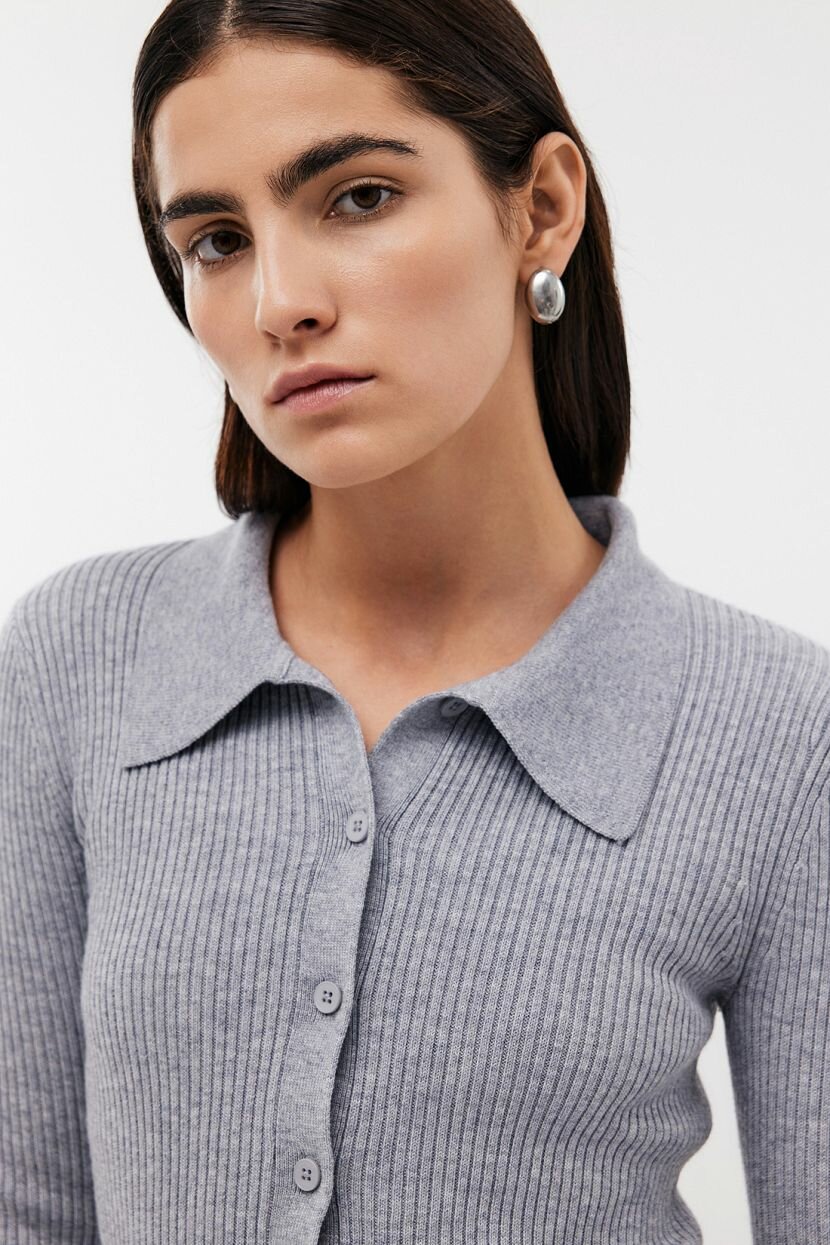 Эффектный кардиган в стиле ретро вдохновлен эстетикой стиля 70-х. Модель с отложным воротником и застёжкой на пуговицы можно носить поверх топов и футболок или использовать как самостоятельный верх. Благодаря компактному крою вы сможете заправить кардиган за пояс джинсов или брюк для стилизации образа. Кардиган имеет прямой силуэт, но мягко повторяет формы тела благодаря вязке эластичным рубчиком. Кардиган выполнен из тёплого вязаного трикотажа. Шерсть в составе отлично согревает в непогоду, даря вам своё натуральное тепло. Добавление полиамида делает трикотаж прочнее, благодаря чему модель дольше сохраняет аккуратный внешний вид. Обратите внимание: чтобы изделие радовало вас своим качеством, стирайте его в бережном или ручном режиме при температуре не выше 30 градусов.