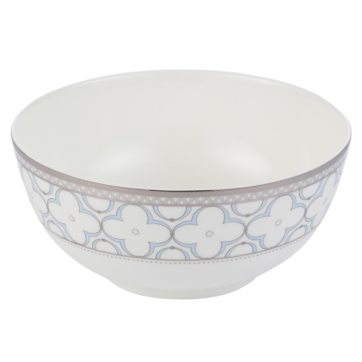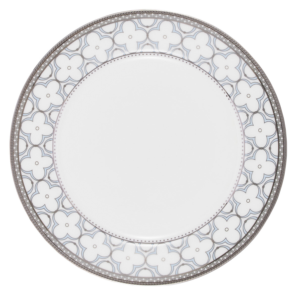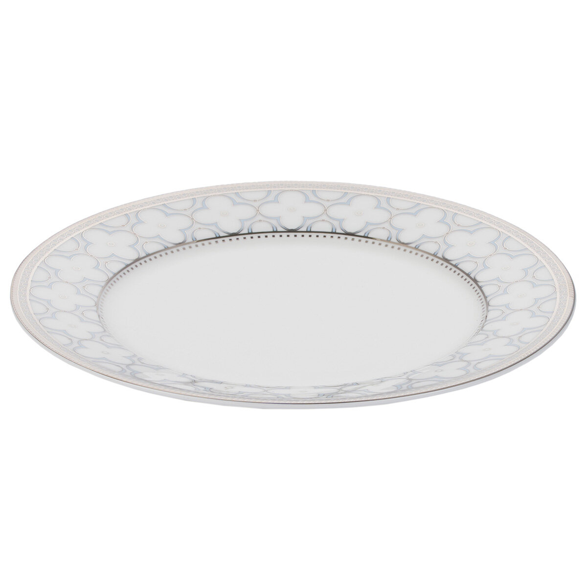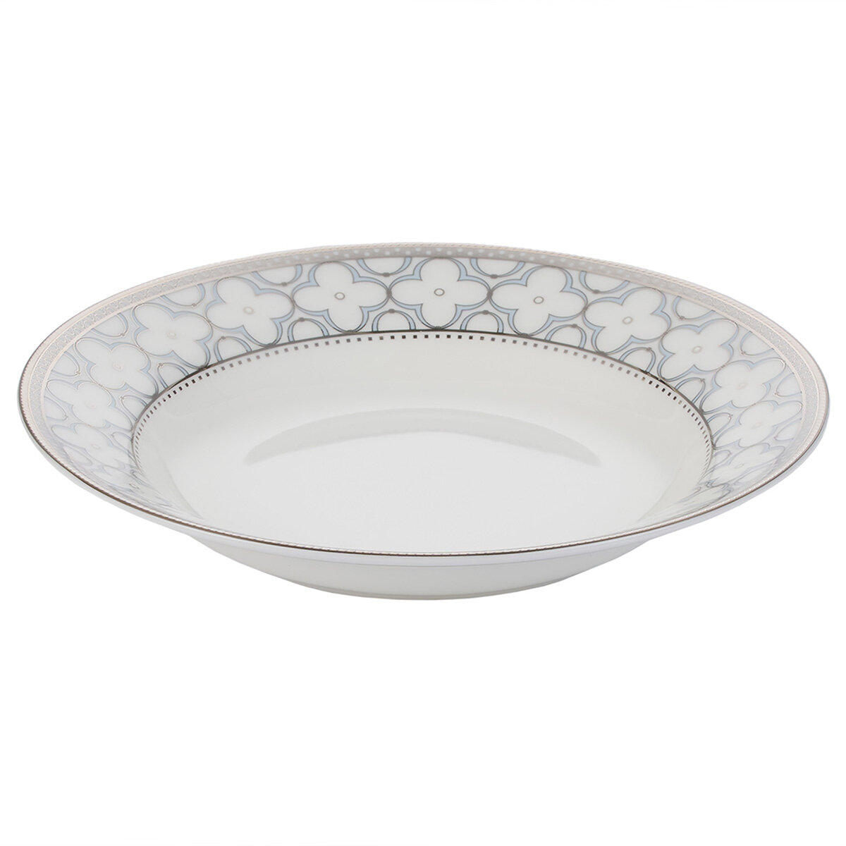 Сервиз Gipfel Patricia выполнен в стиле русской неоготики эпохи расцвета модерна: белоснежную поверхность изделий украшает нежно-голубой цветочный орнамент из клеверов-четырехлистников, приносящих в дом счастье, любовь и благополучие. Серебристый ажурный кант с плавными изогнутыми линиями дополняет композицию. Утонченные формы, элегантный декор, изумительный цвет и глянцевая поверхность делают посуду коллекции Patricia великолепным украшением стола вне времени.