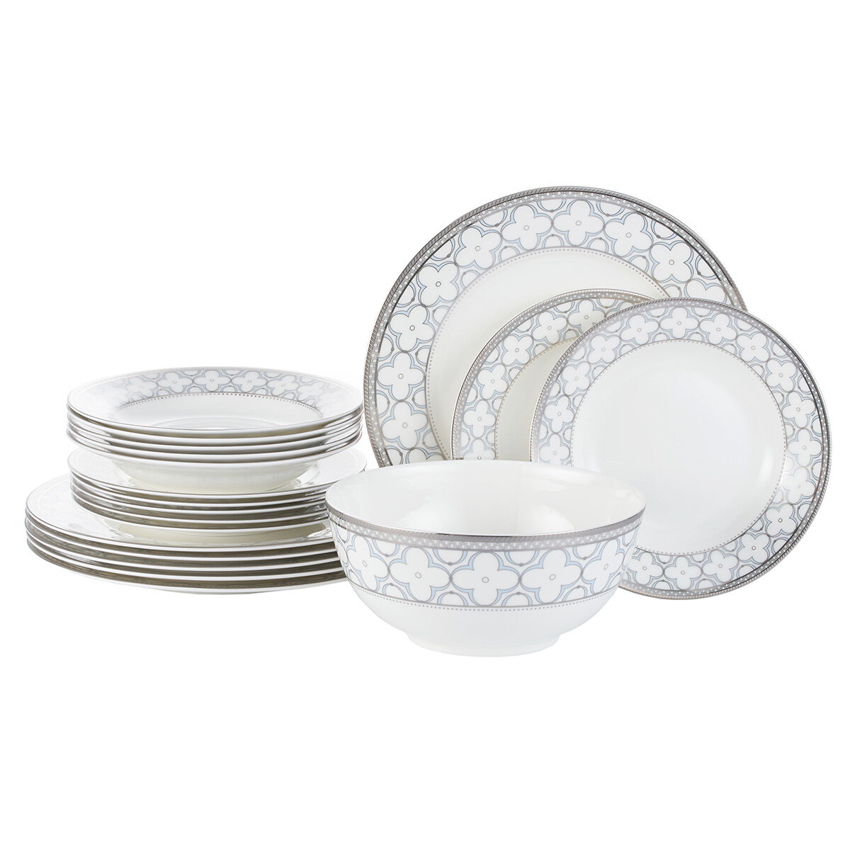Сервиз столовый Gipfel Patricia 42850 19 предметов. Сервиз рассчитан на 6 персон. В наборе: тарелка суповая 20 см (6 шт.), тарелка обеденная 27 см (6 шт.), тарелка закусочная 21 см (6 шт.), салатник 1500 мл, 1 шт.