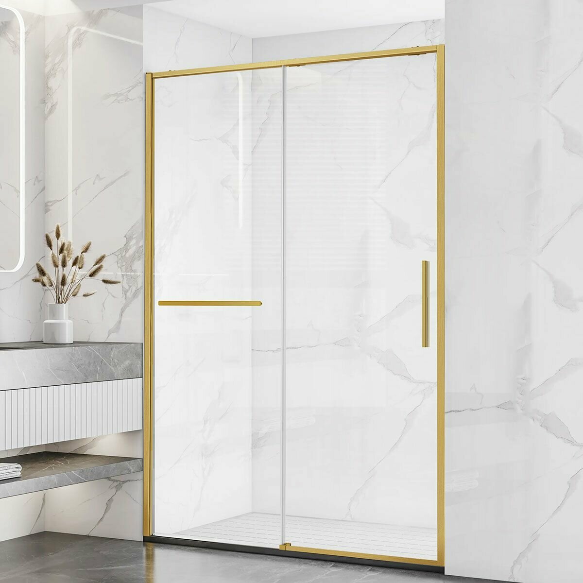Душевая дверь. Цвет профиля-золото. Материал: алюминий. Ширина входа-510мм. Оснащение-встроенный полотенцедержатель
