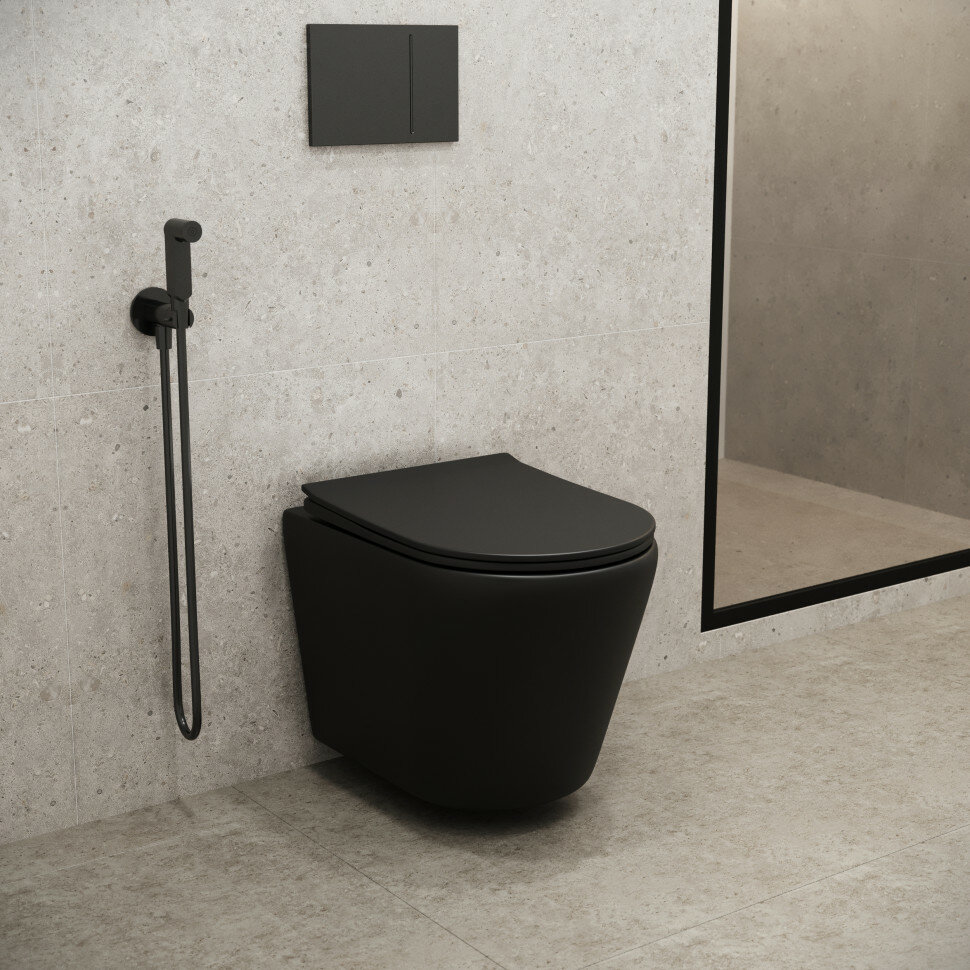 Подвесной унитаз Grossman Fly GR-4478BMS матовый Fly GR-4478BMS черный матовый, с крышкой микролифт