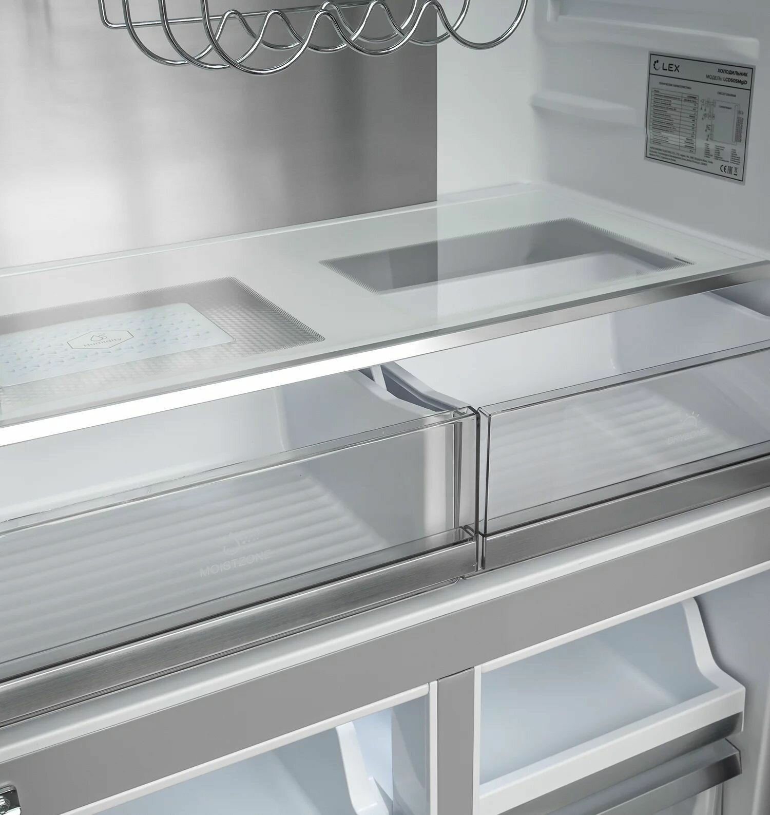 Холодильник Lex LCD505BlGID черное стекло, трехкамерный, с разморозкой холодильной камеры No Frost, с разморозкой морозильной камеры No Frost, расположение морозильной камеры: снизу (CHHE000007)