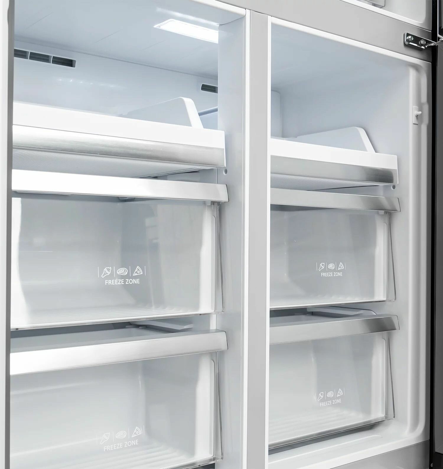 | Особенности | Модель типа CROSS DOOR имеет верхнее холодильное и два независимых нижних морозильных отделения. |