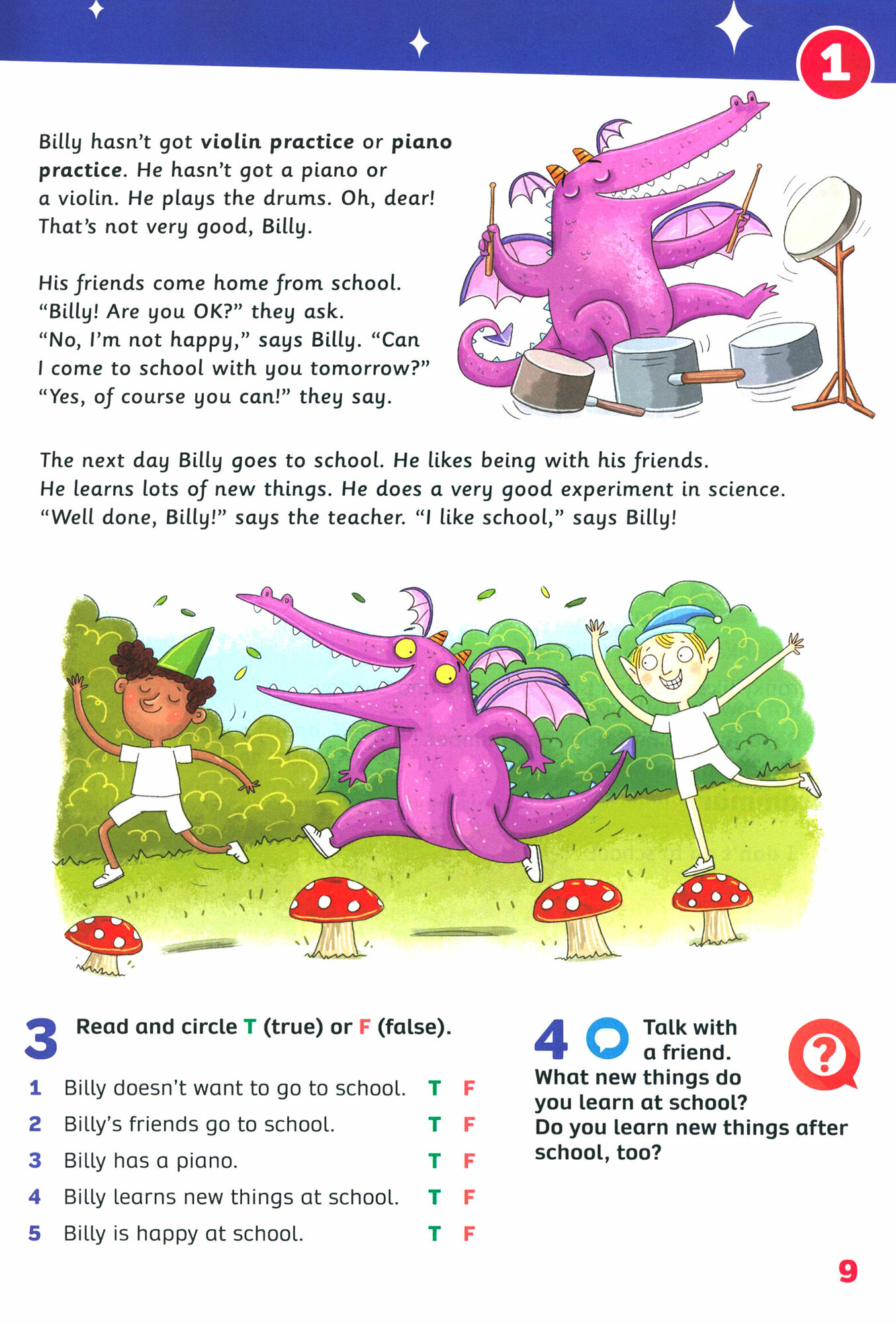 - one text per unit is factual, allowing students to gain non-ELT knowledge, and another text is a story focusing on a value