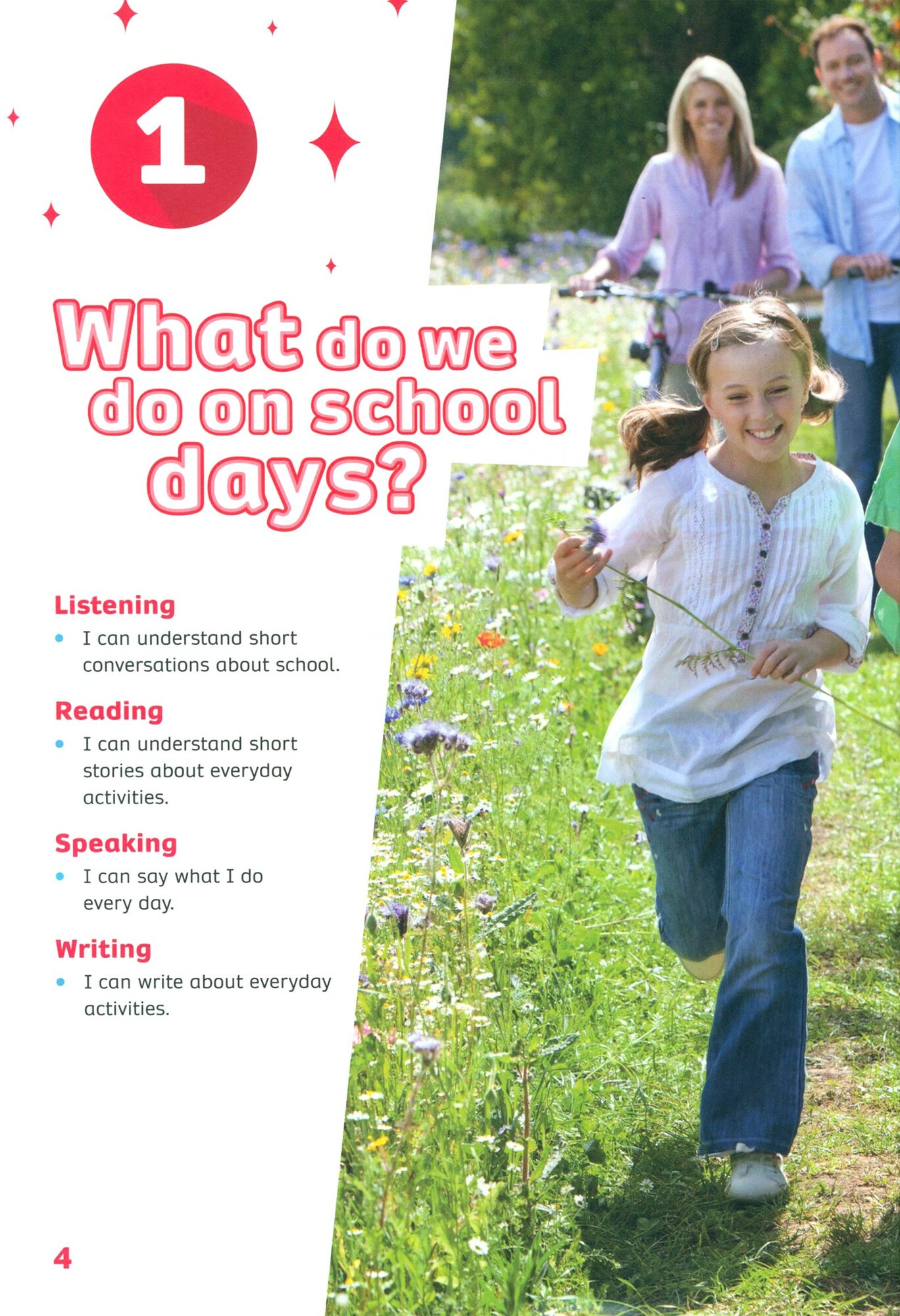 Учебник состоит из 12 разделов учебных материалов, рассчитанных на более чем 9 часов изучения английского языка в неделю. Каждый раздел посвящен исследованию одной из важных тем, отраженных в названии этого раздела, и содержит несколько видеороликов BBC; вымышленный и фактический тексты, для знакомства с моральными ценностями и окружающим миром; стратегии и материалы для развития навыков 21го века; задания для обобщения полученных навыков на странице "Now I Know!"; блок международного английского языка, подчеркивающий различия между британским и американским английским.