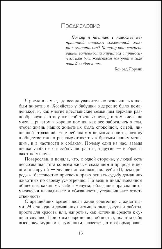 "Почему я начинаю с наиболее неприятной стороны совместной жизни с животными? Потому что степень вашей готовности мириться с приносимым ими беспокойством говорит о силе вашей любви к ним", – Конрад Лоренц