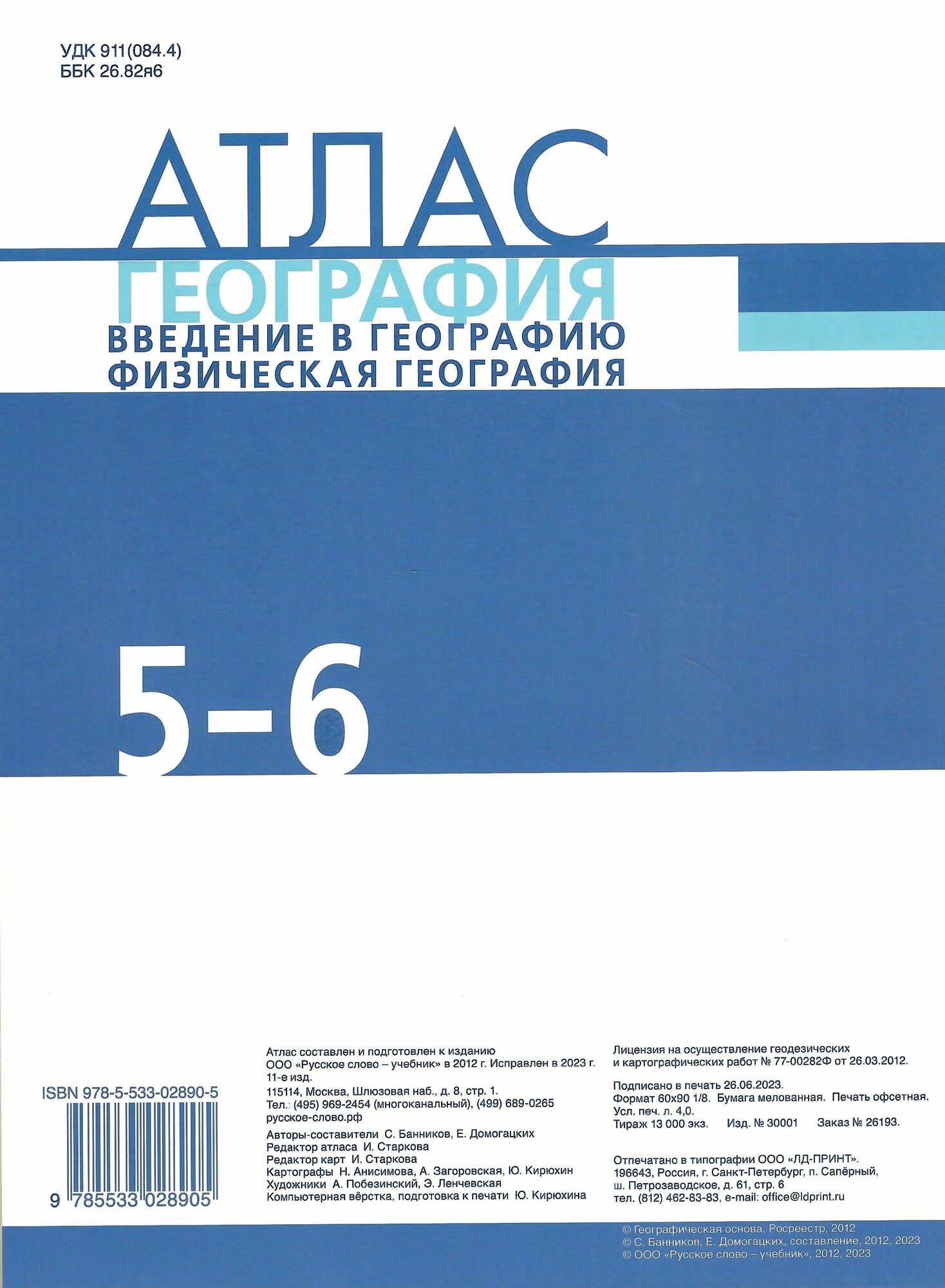 Атлас. География. Введение в географию. Физическая география. 5-6 класс (Евгений Евгеньевич Домогацких, Сергей Валерьевич Банников); Русское слово, 2023