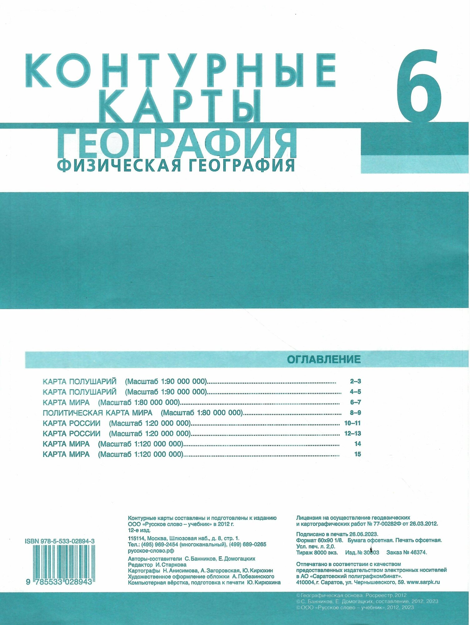Контурные карты по географии для 6-го класса. 12-е издание. Контурные карты «География. Физическая география. 6 класс» входят в состав УМК Инновационная школа. География. 6 класс. Домогацких Е.М. Работа с картами способствует запоминанию картографического содержания, развивает память, внимание, художественное воображение и пространственное восприятие. Содержание контурных карт соответствует программе 6 класса по географии и дополняет материал учебника картографической информацией, обеспечивает наглядность, легкость восприятия и запоминания материала. Комплексное использование атласа и контурных карт в дополнение к учебнику на уроках географии успешно развивает метапредметные умения и навыки. Контурные карты предназначены для самостоятельной работы учащихся в классе и дома. Пособие соответствует Федеральному государственному образовательному стандарту.