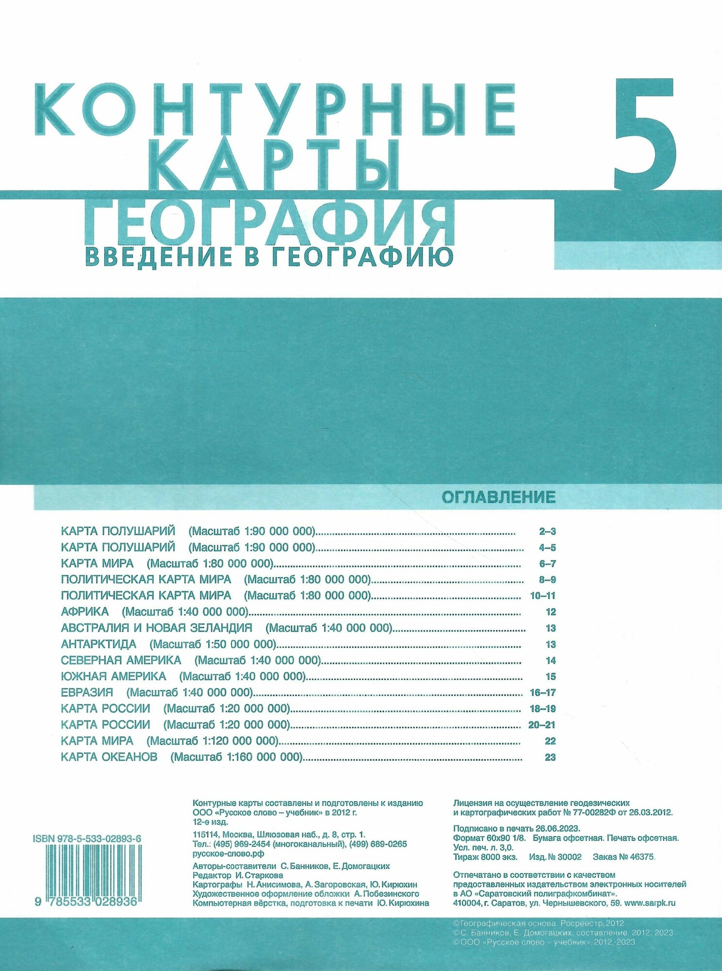 Контурные карты. География. Введение в географию. 5 класс (Евгений Евгеньевич Домогацких, Сергей Валерьевич Банников); Русское слово, 2023