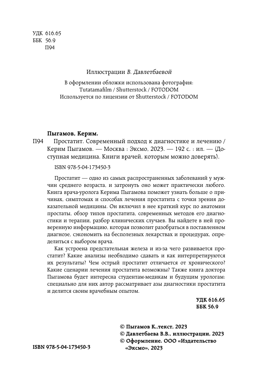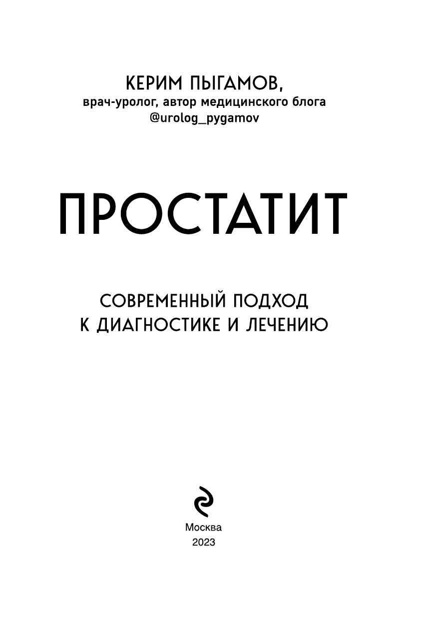Простатит. Современный подход к диагностике и лечению (Пыгамов Керим); ООО "Издательство "Эксмо", 2023