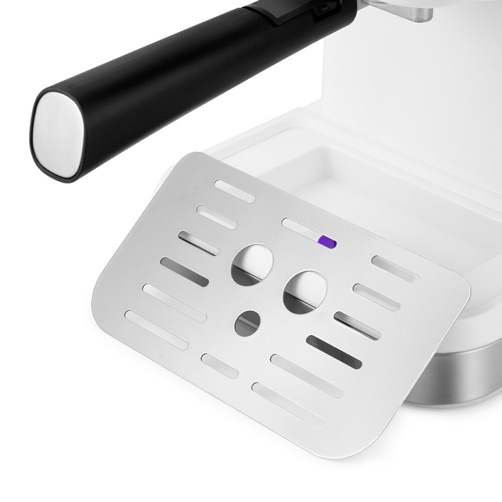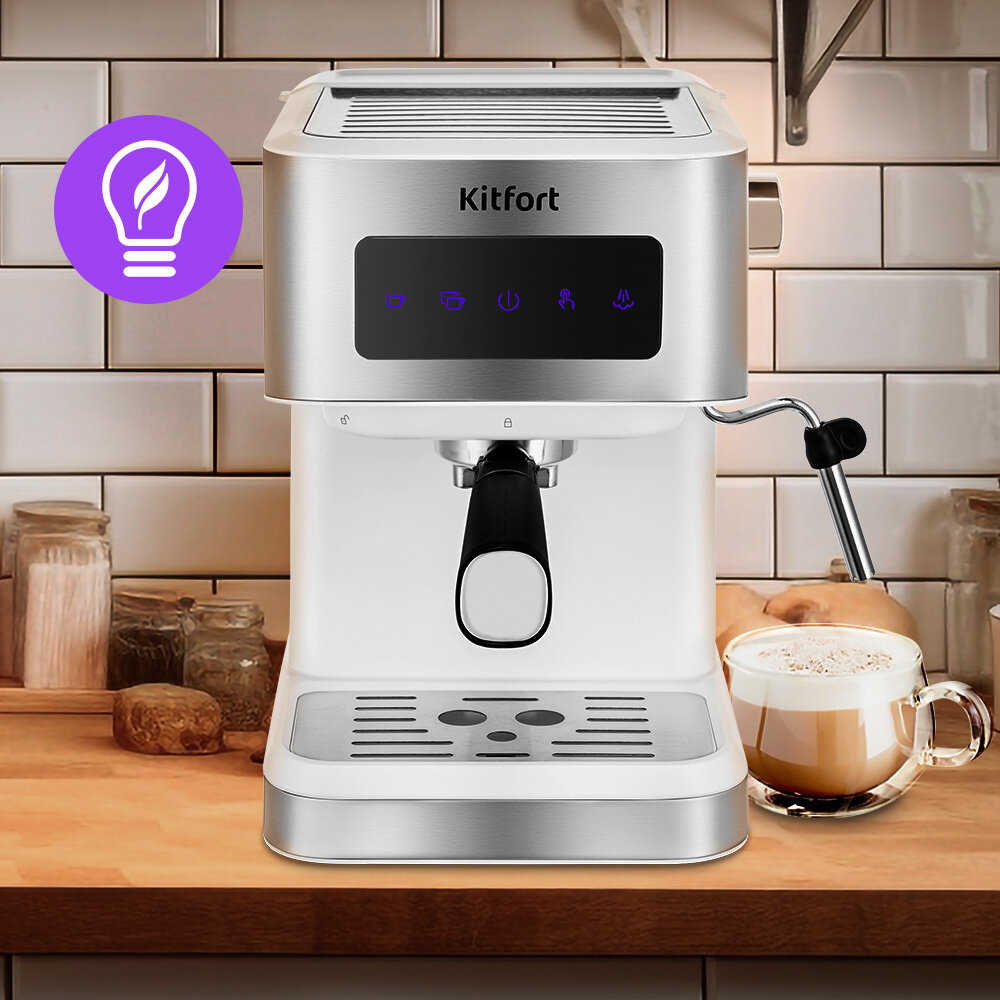 Рожковая кофеварка КТ-7139 поможет приготовить эспрессо, капучино или латте, а также множество других видов кофе на наш вкус. Рожковая кофеварка - отличный выбор для гурманов, желающих ежедневно наслаждаться полным букетом вкусов свежего кофе. На сенсорной панели управления расположены кнопки с необходимыми функциями, такие как эспрессо/двойной эспрессо, кнопка подачи пара. Кнопка Ручное управление позволяет самостоятельно регулировать объём напитка. Регулятор на боковой панели служит для запуска подачи пара или горячей воды: в зависимости от выбранного режима работы кофеварки. Пар или вода при повороте регулятора подаются через стимер. Молотый кофе помещается в фильтр рожка, прессуется в таблетку темпером, затем вода проливается сквозь кофе под давлением. Напиток получается без примеси гущи, сохраняется оригинальный вкус зёрен, большое количество полезных веществ и тонкий аромат кофе. Для подачи пара и горячей воды у КТ-7139 есть паровая трубка стимер. Стимер погружают в холодное молоко, включают подачу пара и взбивают молочную пенку. С помощью стимера вы также можете подогреть остывший чай или молоко. На платформе можно хранить темпер или ставить чашки, чтобы они были тёплыми или лучше сохли после мытья. На платформе удобно размещать чашки во время приготовления молочной пены. К моменту, когда вы закончите, чашки успеют подогреться. Поддон для сбора капель со съёмной решёткой из нержавеющей стали легко снимается, моется и устанавливается обратно. В поддоне установлен специальный поплавок. Если поддон заполнится водой, то поплавок всплывёт выше решётки. Резервуар для воды съёмный его можно легко снять и наполнить водой в любом удобном месте. Крышка резервуара для воды открывается, поэтому можно заливать воду в резервуар, не снимая его. У кофеварки есть режим энергосбережения через 25 минут бездействия она отключается. При этом нагрев бойлера не осуществляется. Чтобы снова включить нагрев кофеварки, нажмите на кнопку Вкл/Выкл. Мерная ложка-темпер поможет наполнить рожок и утрамбовать в нём кофейную таблетку. Металлические фильтры для одной и двойной порции эспрессо с лазерным нанесением отверстий долговечны и не требуют использования каких-либо расходующихся частей.