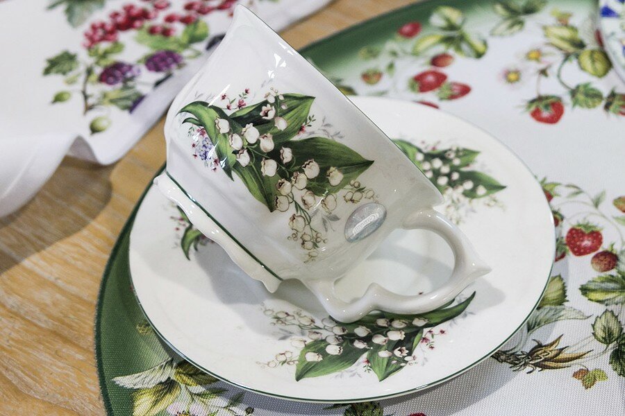 Кружки и чайные пары изготовлены из высококачественного костяного фарфора.Оригинальная изящная форма делает их уникальными и выделяет на фоне другой посуды.Выверенные и доведённые до совершенства цветочные и растительные мотивы отражают любовь к природе, лесам и садам.Широкий выбор дизайнов позволит создать свою атмосферную коллекцию чайной посуды.