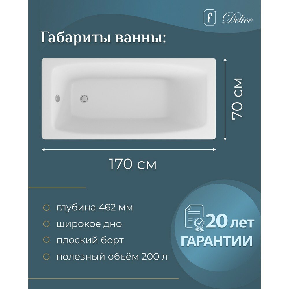 Чугунная ванна Delice Repos 170х70 DLR220508-AS