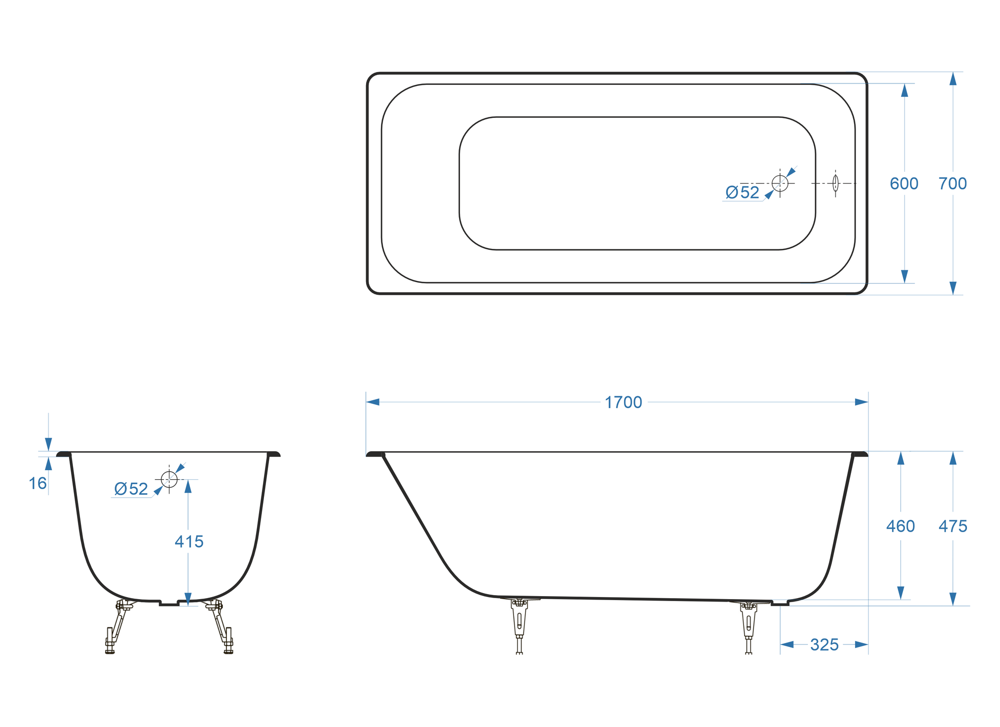 - удлиненное дно, в размере ванны 170 см длина дна (120 см) позволяет комфортно располагаться человеку.