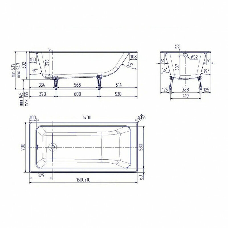 Чугунная ванна Delice Parallel 150х70 DLR220503-AS