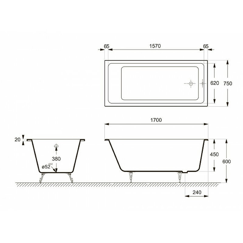- Размер чаши ванны (ШхВхД): 750х450х1700 мм.