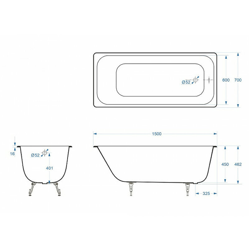 - Размер чаши ванны (ШхВхД): 700х462х1500 мм.