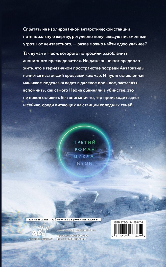 Так думал и Неон, которого попросили разоблачить анонимного преследователя. Но даже он не мог предположить, что в герметичном пространстве посреди Антарктиды начнется настоящий кровавый кошмар. И пусть оставленная маньяком подсказка ведет в далекое прошлое, заставляя вспомнить, как самого Неона обвиняли в убийстве, это не повод оставить без внимания то, что происходит здесь и сейчас, среди витающих на станции холодных теней.