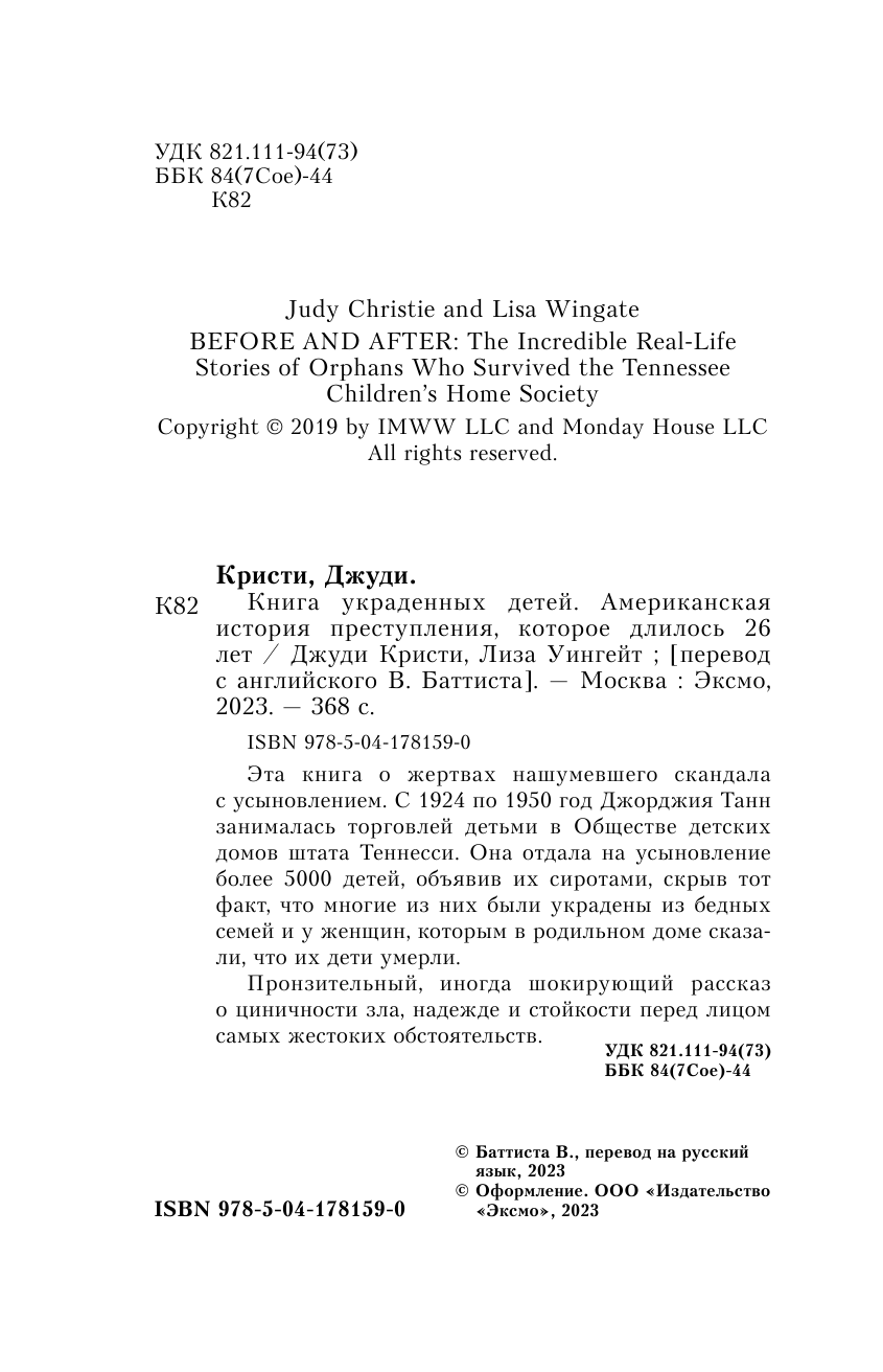 Книга украденных детей. Американская история преступления которое длилось 26 лет (Уингейт Лиза, Кристи Джуди); ООО "Издательство "Эксмо", 2023