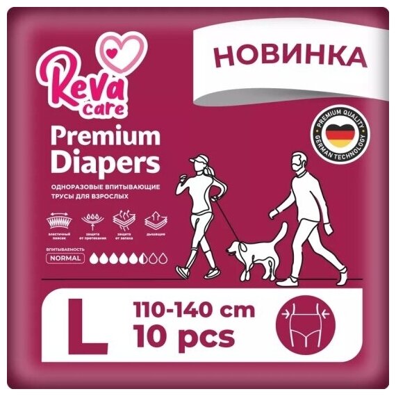 Трусы впитывающие для взрослых Reva Care 130-160см 10шт р.XL Драйлок Текнолоджиз (2299110) (размер: XL (52-54))