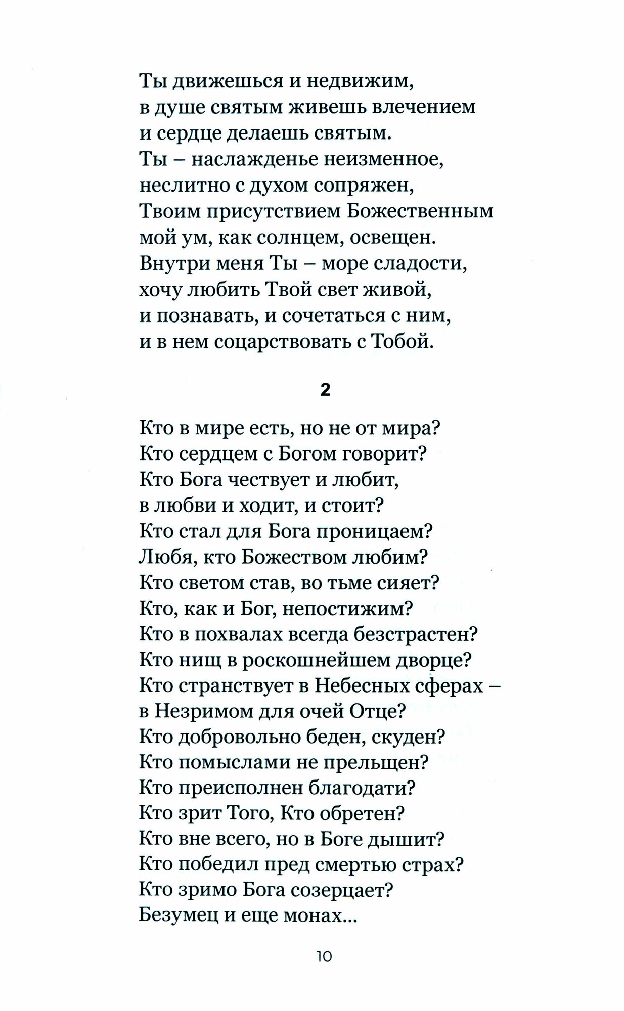В этот стихотворный сборник включены молитвы в стихах и в прозе, собранные из давних различных дневников и блокнотов. В первой части приведены молитвы, составленные в отшельничестве по наставлениям из священных гимнов преподобного Симеона Нового Богослова, ибо духовное послушание является лучшим средством благоговейного почитания святых. Вторая часть посвящена монашеской и уединенной жизни, всецело погруженной в сокровенные моления сердечного покаяния, которые составляют начало и завершение духовной жизни всякого верующего человека.