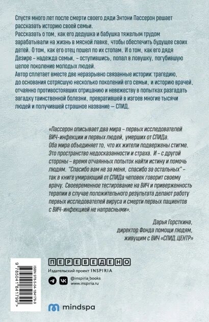Трудное чтение, от которого, вопреки всему, невозможно оторваться. Это не просто трагичная семейная сага, но и история о научных исследованиях и открытии СПИДа с начала 80-х годов.