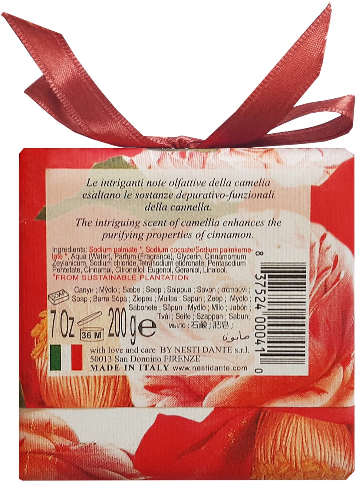 Нежность цветов и деликатные нотки пряностей соединились в натуральном итальянском мыле «Камелия и Корица» от Nesti Dante, сваренном вручную по старинной итальянской рецептуре. Мыло мягко и бережно очищает кожу, даря ей ощущение первозданной свежести и чистоты. Натуральный состав и отсутствие щелочи не вызывает раздражений, не стягивает и не пересушивает кожу, а пушистая мыльная пена с ароматами цветов и корицы смягчает и разглаживает поверхность кожи, делая ее нежной и шелковистой.Нести Данте — одна из немногих итальянских мыловаренных фабрик, которая продолжает использовать в производстве только натуральные ингридиенты и кустарный способ производства. Тщательный выбор каждого ингредиента в отдельности позволяет использовать ценное сырьё, такое как цельные нейтральные растительные и животные жиры, и, что более важно, эти качественные материалы позволяют получать более обогащенное и более мягкое мыло благодаря присутствию фракции глицерида в жирах.
