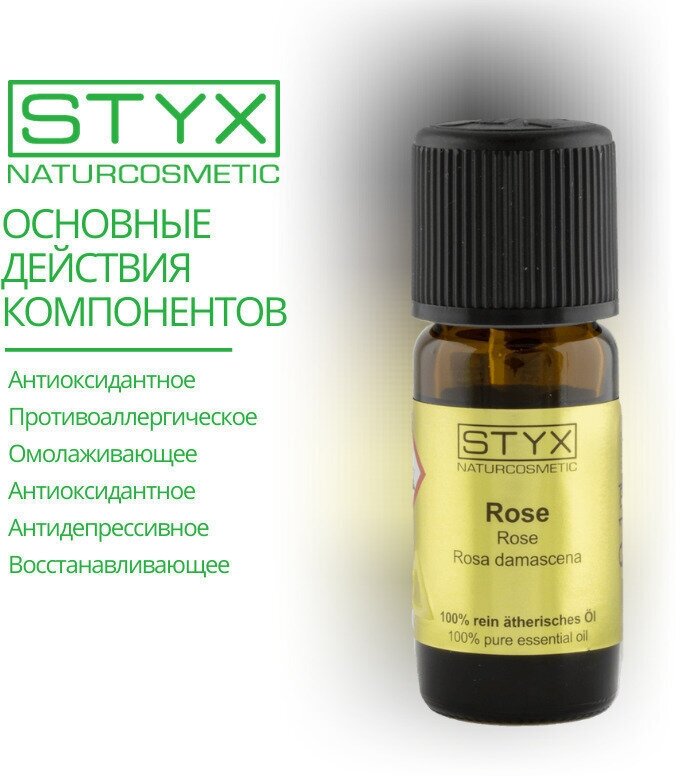 | Полное наименование | Styx Naturcosmetic Эфирное масло Роза, 1 мл |
