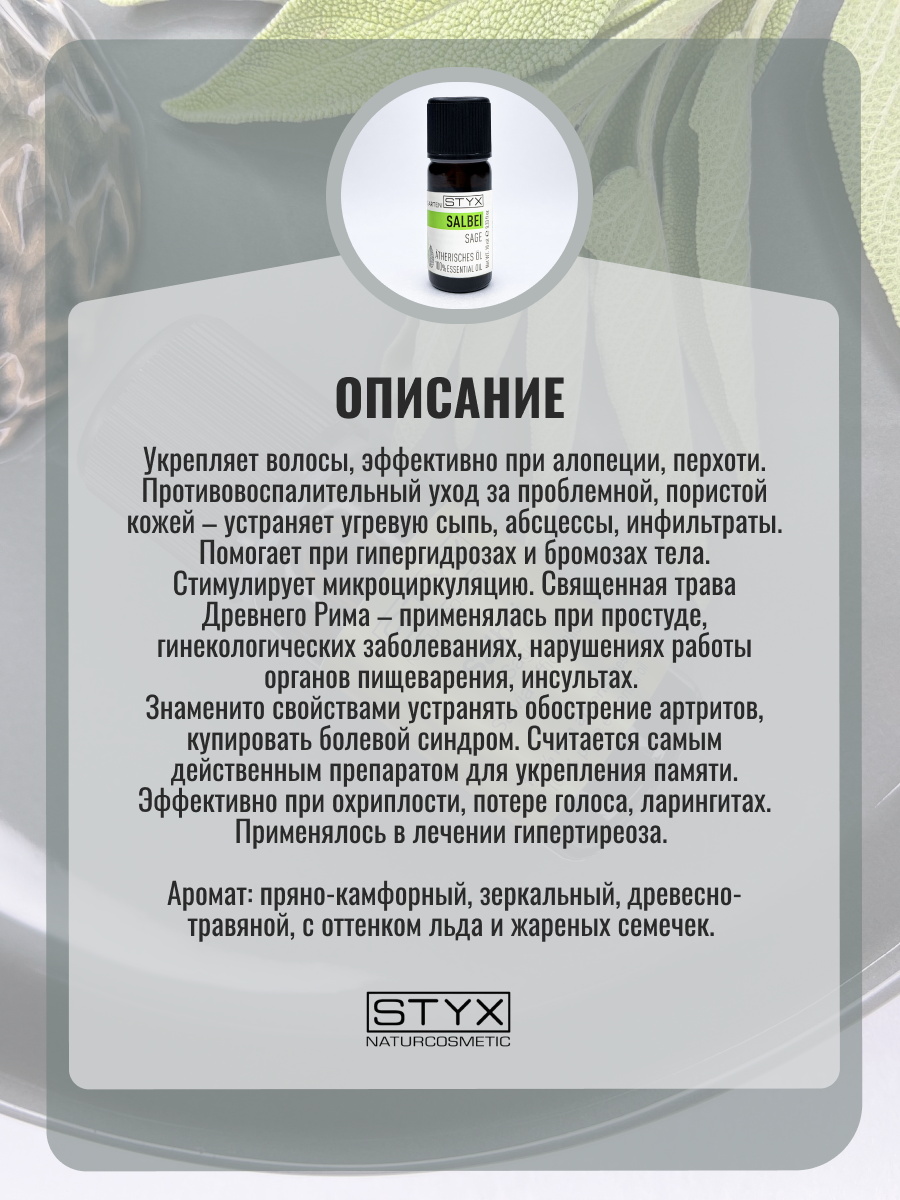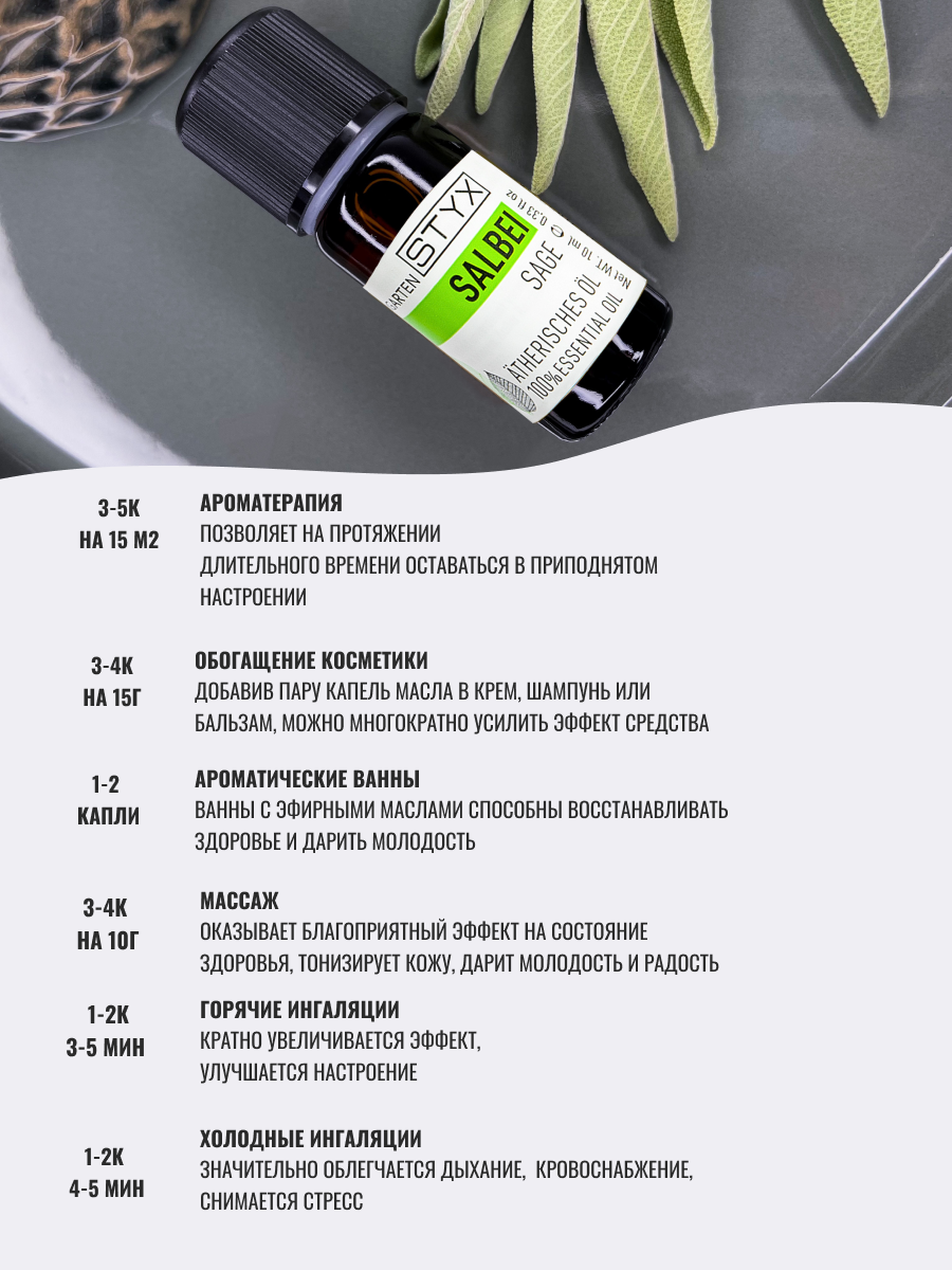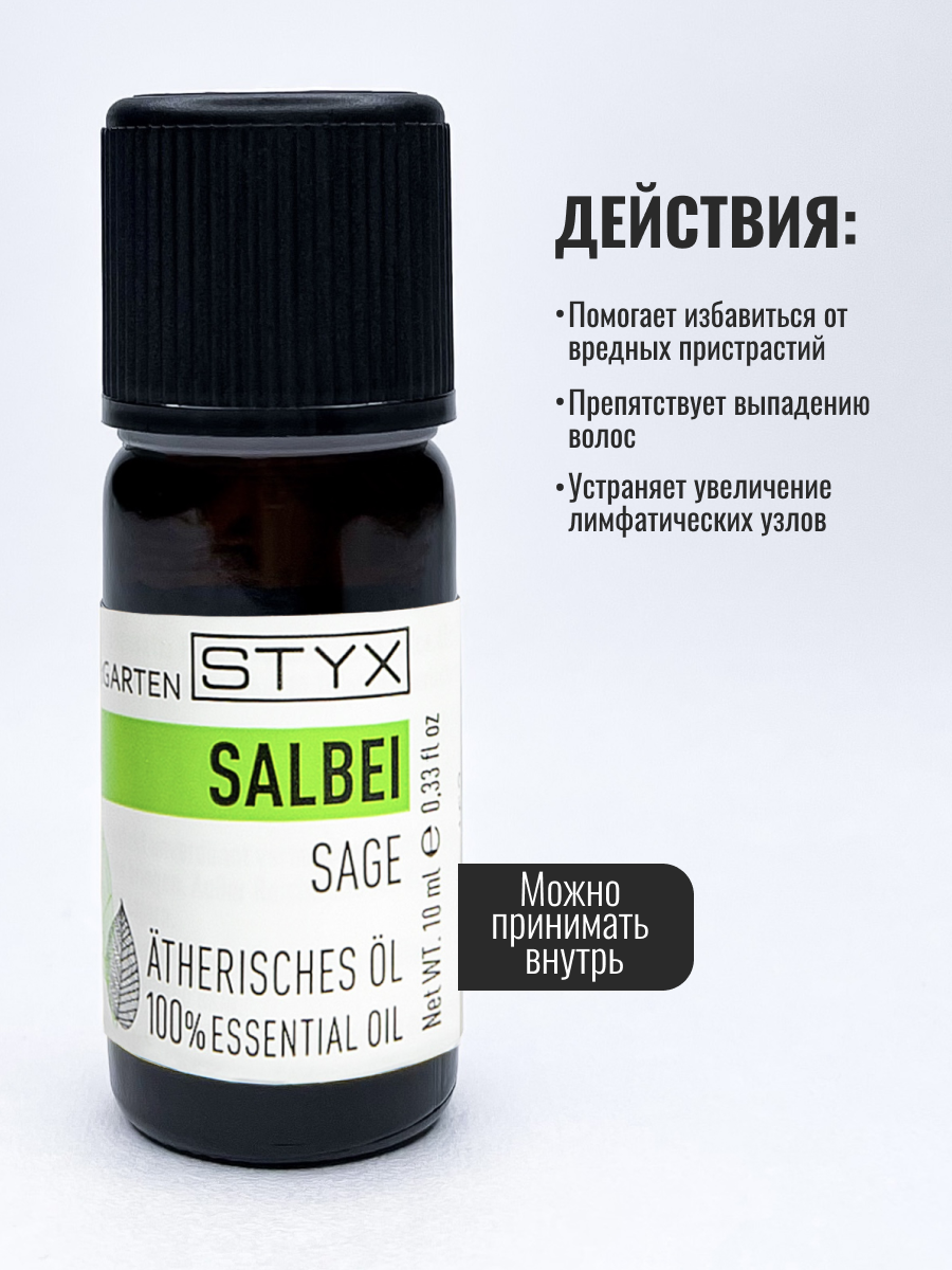 | Полное наименование | STYX эфирное масло Шалфей 10 мл |