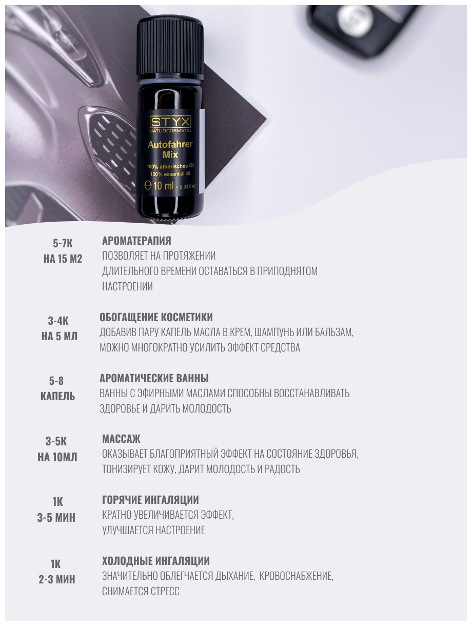 | Полное наименование | Стикс Эфирное масло для автомобилиста 10мл |