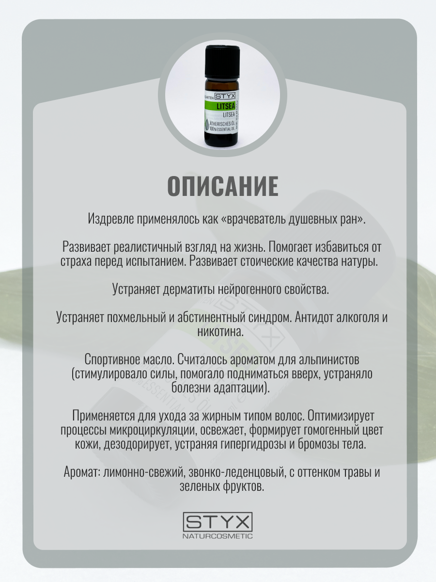 | Полное наименование | Styx Naturcosmetic Эфирное масло Левзея, 10 мл |