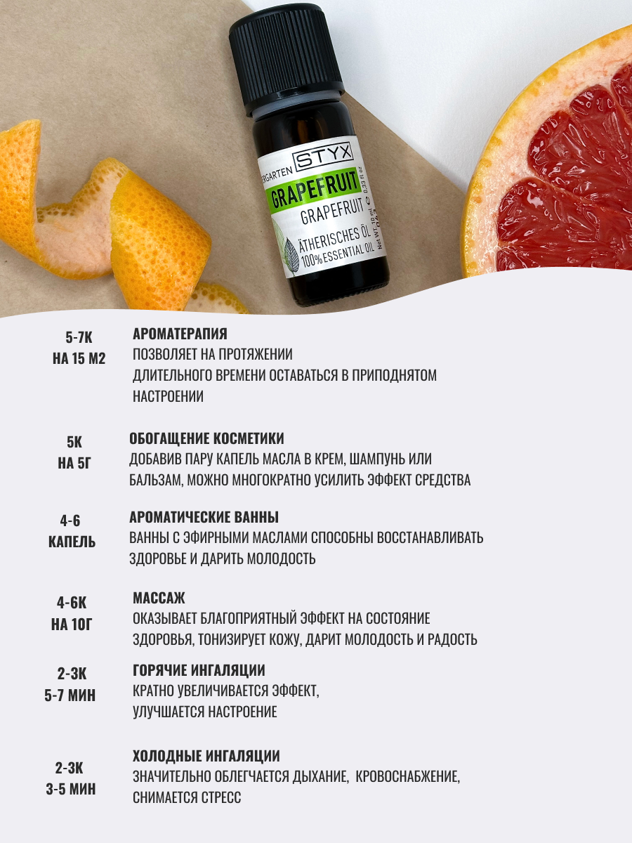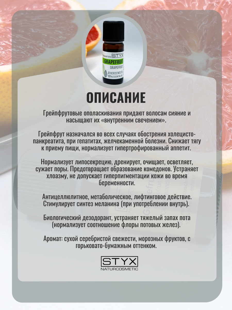 | Полное наименование | Стикс Эфирное масло грейпфрут 10мл |