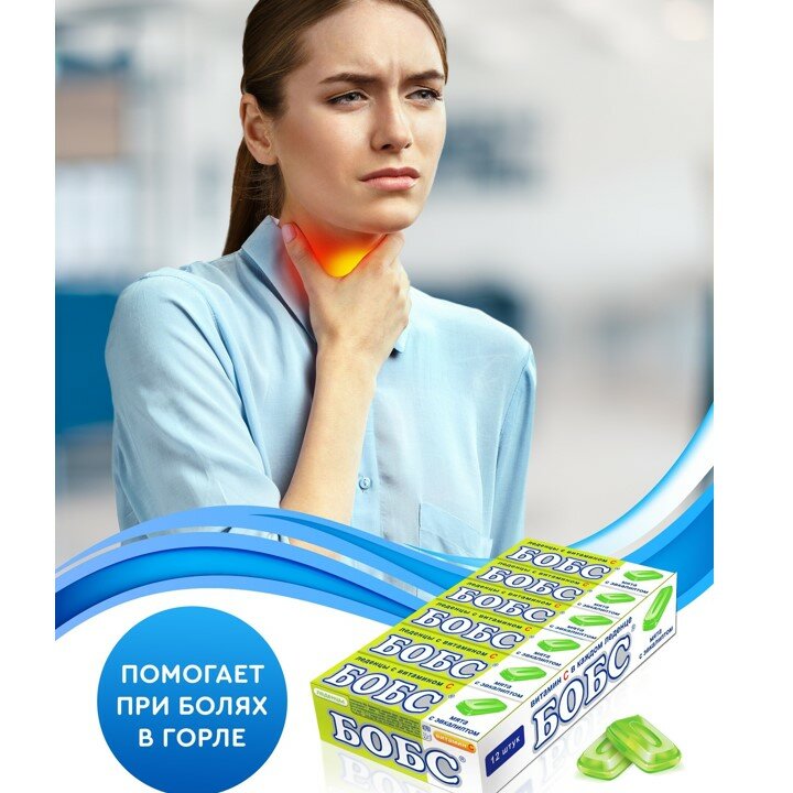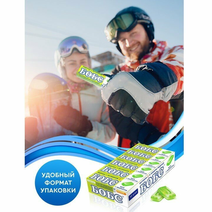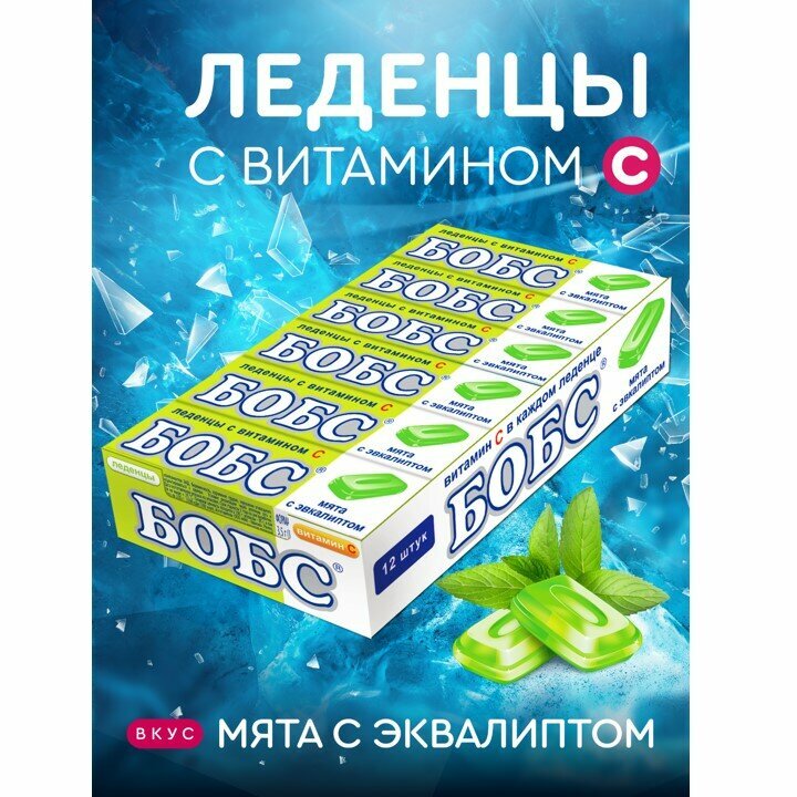 Сладкая сказка, леденцовая карамель «Бобс» со вкусом мяты с эвкалиптом и с витамином C «Бобс» с витамином С — продукт «Сладкой сказки», который успешно продаётся на российском рынке более 25 лет. Леденцы со вкусом мяты с эвкалиптом совмещают в себе функции освежающих и витаминизированных леденцов. В каждом леденце содержится 5% от дневной суточной нормы витамина С. «Бобс» освежает дыхание и способствует уменьшению першения и смягчению горла при голосовых нагрузках за счёт содержания ментола и эфирного масла эвкалипта. Леденцы производятся на собственной российской фабрике с использованием только натуральных ингредиентов. Компактная и удобная упаковка позволит взять «Бобс» с собой в дорогу — они легко поместятся в дамской сумочке, мужском кармане или бардачке автомобиля.