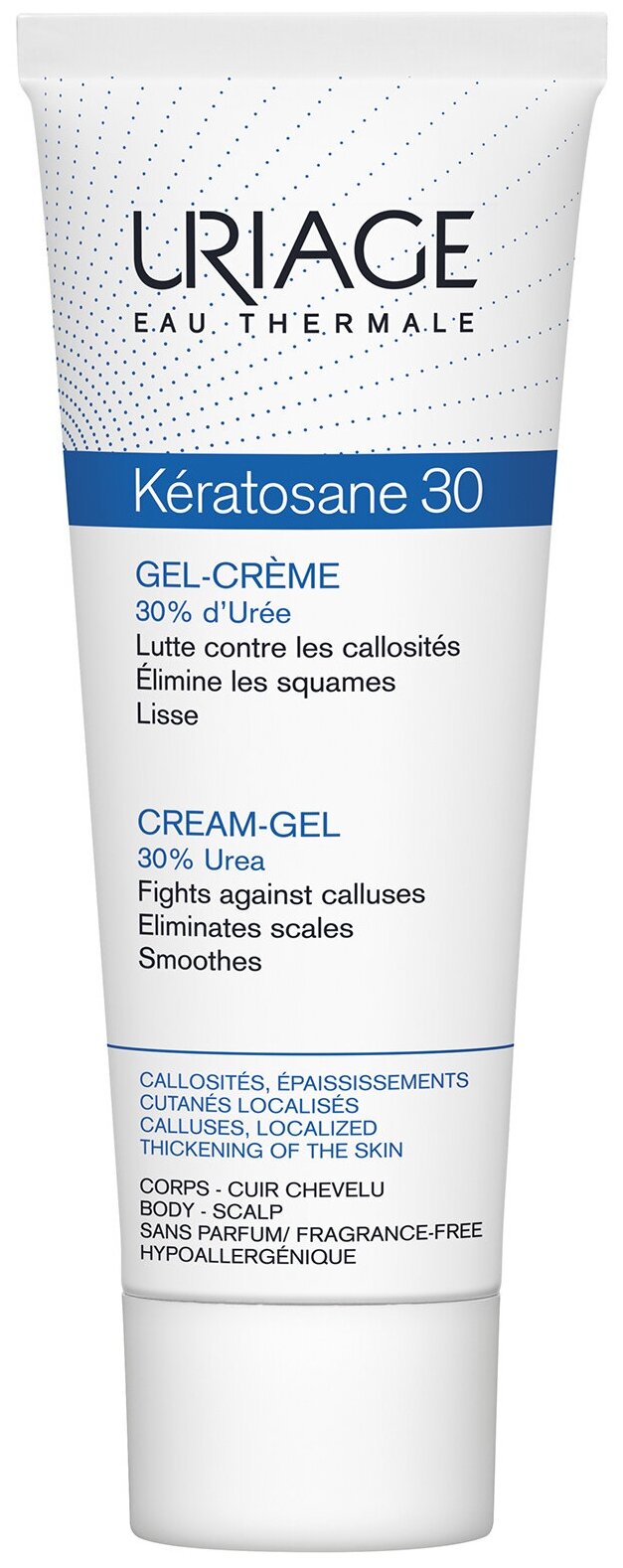 Компания Uriage (Урьяж) - это производитель натуральной косметики основой которой является термальная вода. Вся продукция компании производится согласно высочайшим международным стандартам и особому контролю за качеством сырья и микробиологическому контролю. Базовая составляющая любой гаммы данного бренда составляем термальная вода, источник которой находится у подножия Альп на высоте 400 метров, Гамма - КЕРАТОЗАН - СРЕДСТВА УХОДА ДЛЯ ОГРУБЕВШЕИ?, ШЕЛУШАЩЕИ?СЯ КОЖИ. URIAGE КЕРАТОЗАН 30 ГЕЛЬ-КРЕМ ДЛЯ МОЗОЛИСТЫХ ОБРАЗОВАНИЙ И ЛОКАЛИЗОВАННЫХ УТОЛЩЕНИЙ КОЖИ Внешний вид: текстура геля-крема мгновенно впитывается. Специальные особенности: Гипоаллергенный. Некомедогенный. Без ароматизаторов. Благодаря мягкому кератолитическому и кераторегулирующему, а также смягчающему и мощному увлажняющему действию мочевины в составе, Кератозан 30 устраняет шелушение кожи и эффективно борется с мозолистыми образованиями, которые характеризуются значительным утолщением кожи. Кератозан® 30 соединяет в своем составе активные вещества- кератолитики, успокаивающие и увлажняющие компоненты для устранения десквамации кожи и эффективной борьбы с мозолистыми образованиями, которые характеризуются значительным утолщением кожи. Насыщенная эмульсия геля-крема легко впитывается, не оставляя жирного налета. В результате применения даже самые отвердевшие участки становятся эластичными. Активные компоненты:
