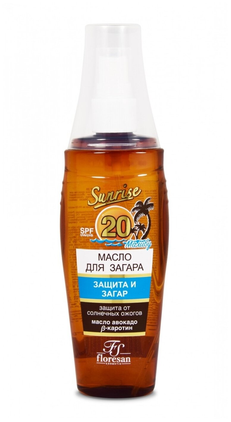 Floresan - это известный бренд, который давно зарекомендовал себя на рынке косметических средств. Их масло для загара "Малибу SPF 20" - это идеальное средство для тех, кто хочет получить ровный и стойкий загар.Масло для загара Floresan "Малибу SPF 20" имеет удобный распылитель, который позволяет легко наносить и быстро впитывать масло без образования липкой пленки на коже. Комплекс фотостабильных фильтров защищает от солнечных лучей и предупреждает появление ожогов, а витамин Е и экстракт моркови стимулируют выработку меланина и ускоряют появление загара.Способ применения масла очень прост: нанесите его на кожу лица и тела за 10-20 минут до солнечных ванн. Объем флакона - 135 миллилитров, что позволит использовать его несколько раз.Состав масла Floresan "Малибу SPF 20" очень богат витаминами и полезными компонентами. Он содержит масло авокадо, бета-каротен, экстракт моркови, витамин Е и другие компоненты, которые питают и смягчают кожу, обеспечивая интенсивный загар и защиту от фотостарения.В целом, масло для загара Floresan "Малибу SPF 20" является отличным выбором для тех, кто ценит качество и эффективность косметических средств. Оно подходит для использования как в солярии, так и на открытом воздухе, и обеспечивает быстрый и стойкий эффект.